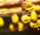 Vai tik nebūs medainā bumbulīte? Augļķermeņi vertikāli izstiepti, sporu mākonis ciešā klājienā.