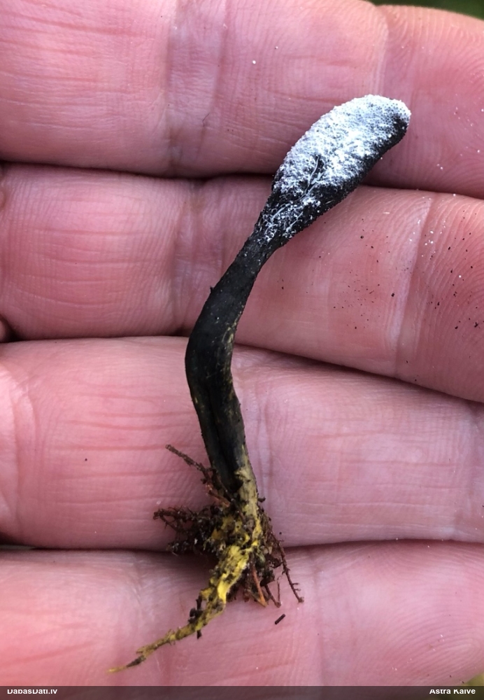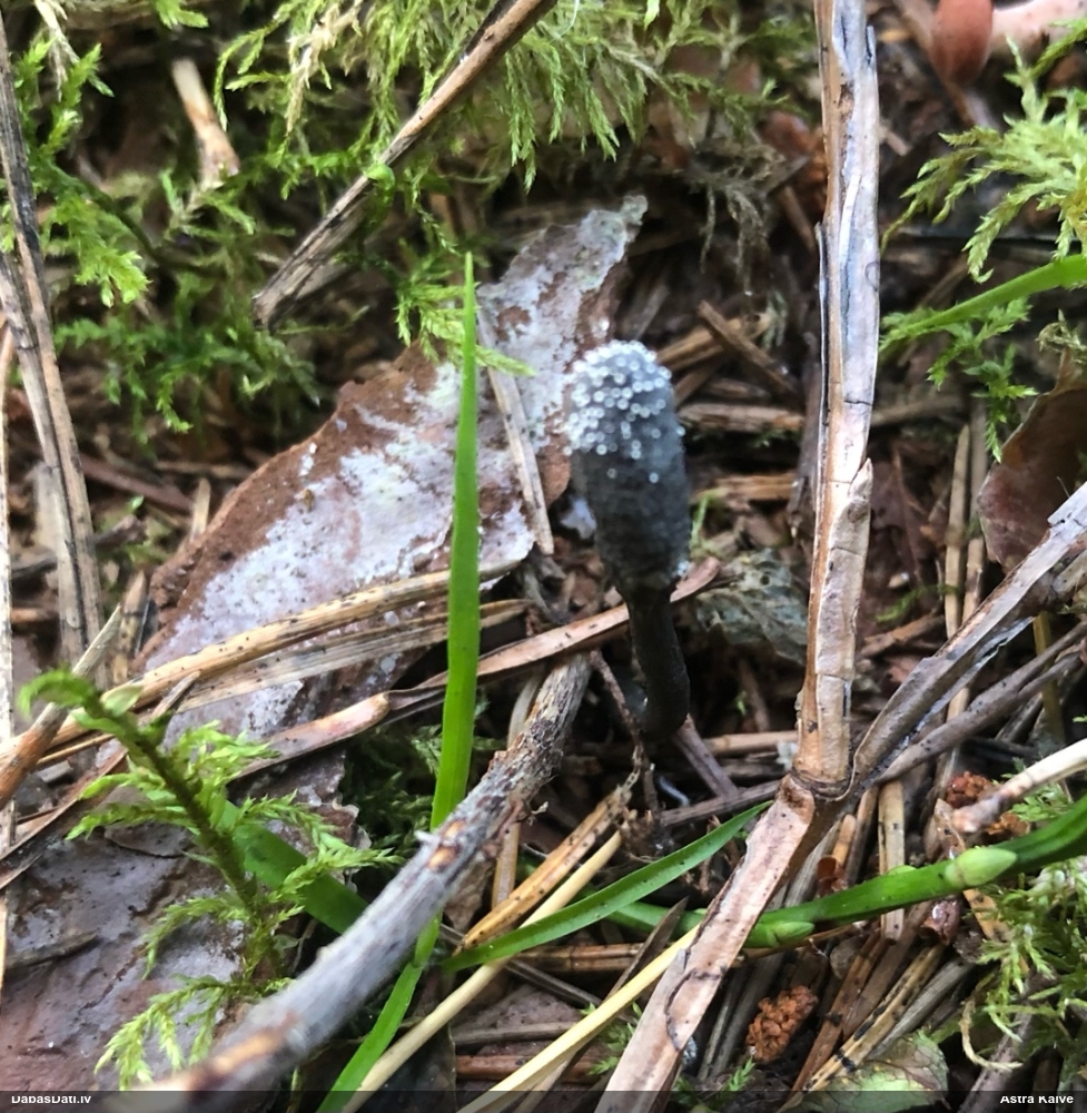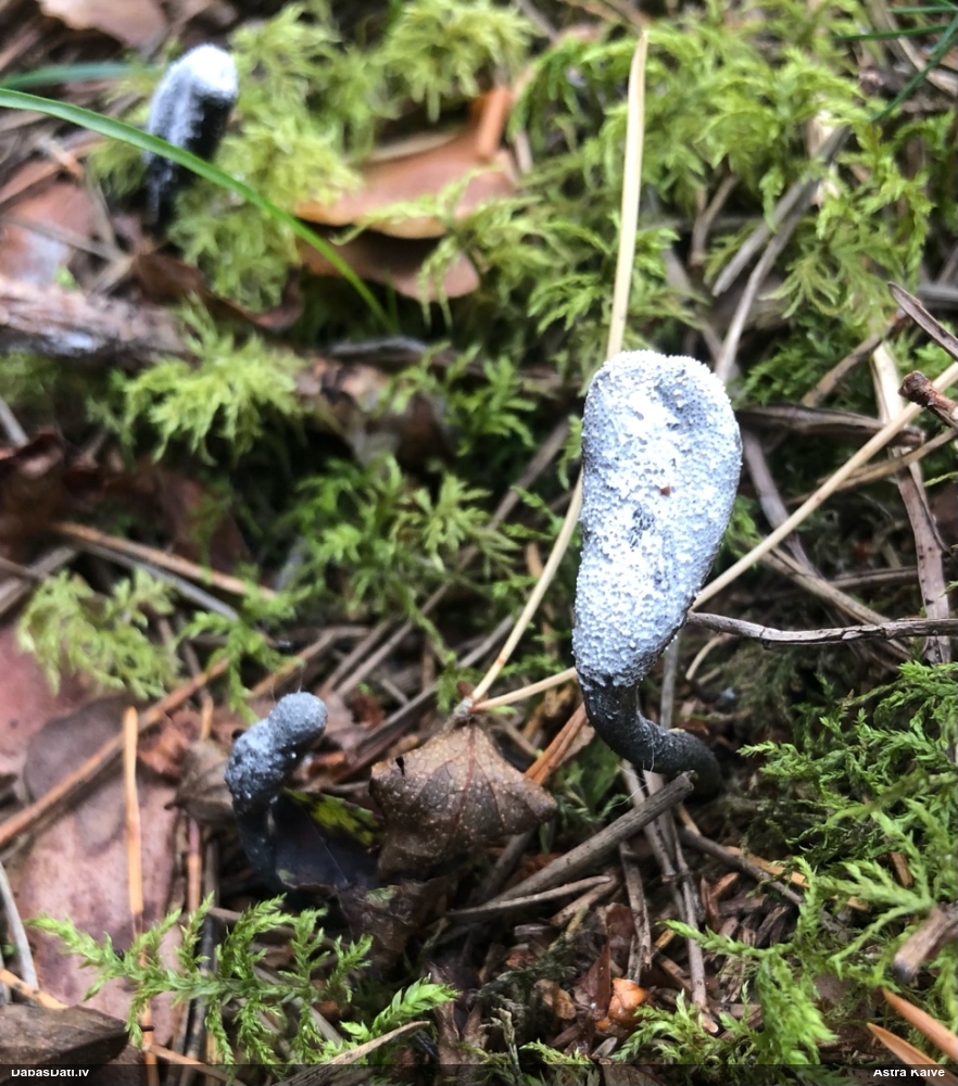 Vai tik nebūs medainā bumbulīte? Augļķermeņi vertikāli izstiepti, sporu mākonis ciešā klājienā.