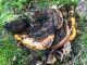 Satrūdējusi kritala mežā, nav dēļi. Iespējams, egle, jauktu koku mežs.