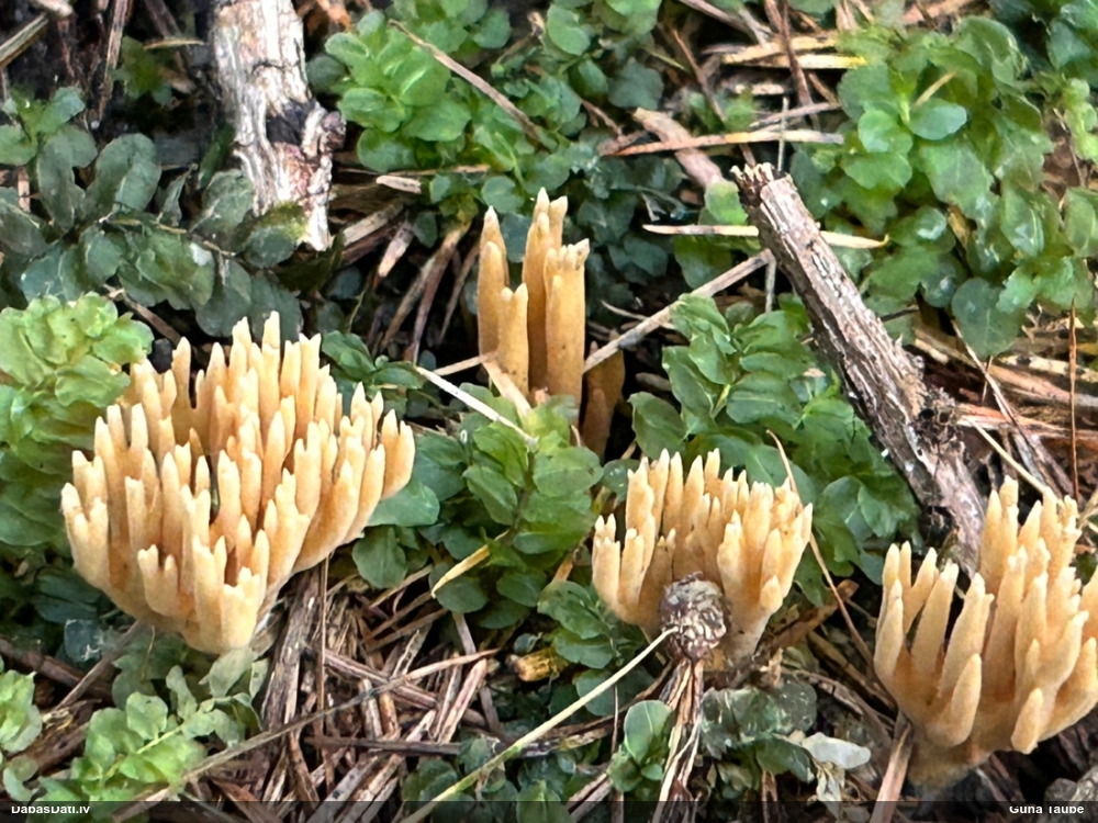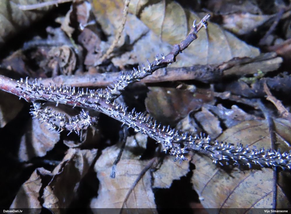Vai tik nebūs medainā bumbulīte? Augļķermeņi vertikāli izstiepti, sporu mākonis ciešā klājienā.