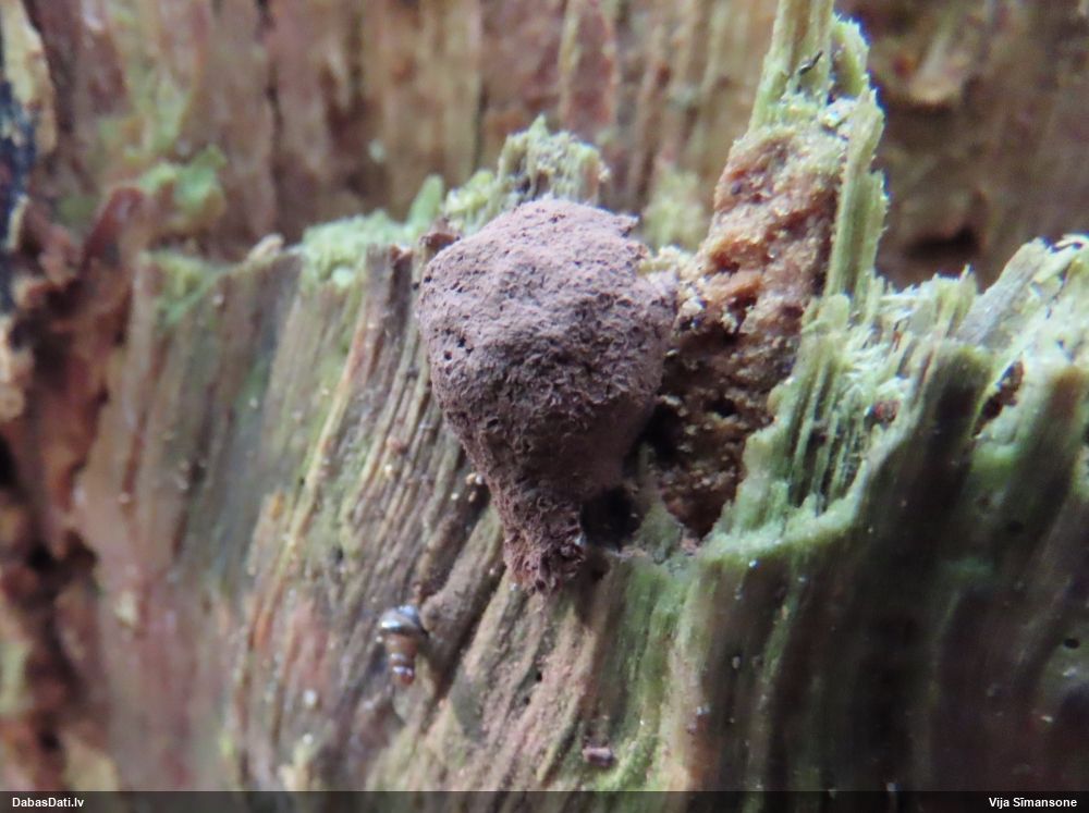 Cukurīte (Didymium) vai pumpurīte (Physarum)? Man galviņas virsma šķiet vairāk kā cukurītei, bet uz sēnes .. pieredze ar pumpurītēm.