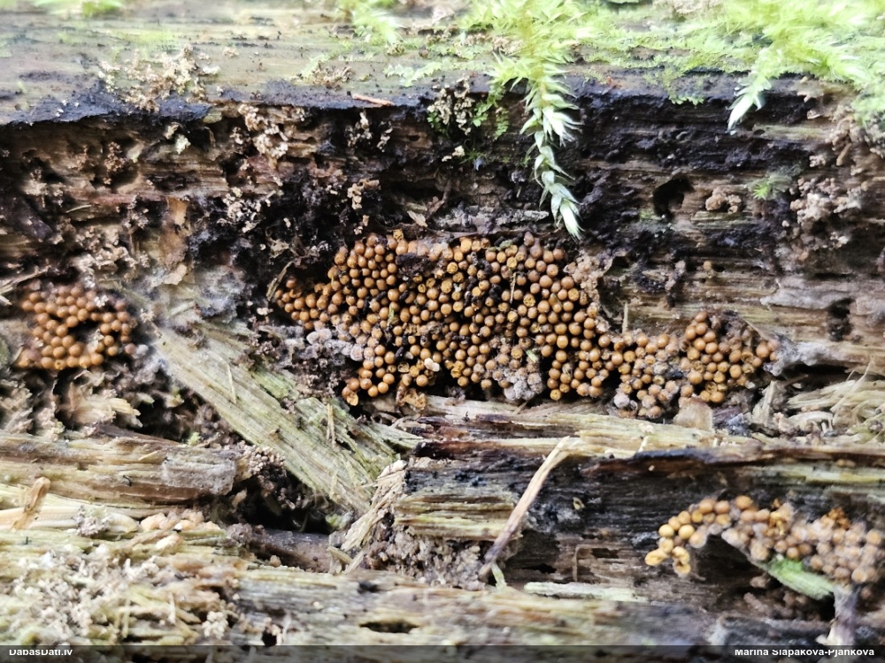 Cukurīte (Didymium) vai pumpurīte (Physarum)? Man galviņas virsma šķiet vairāk kā cukurītei, bet uz sēnes .. pieredze ar pumpurītēm.