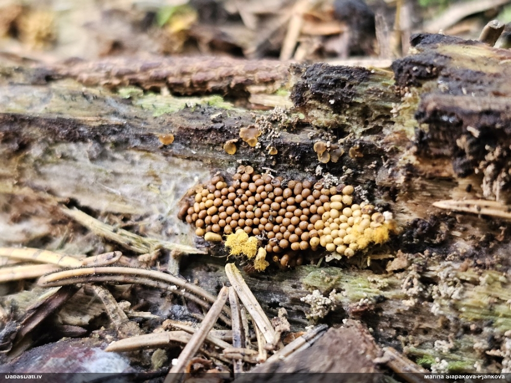 Šobrīd divas versijas - Physarum psittacinum un P.braunianum. Bez paraudziņa te skaidrīzā netiks, bet biotops interesants