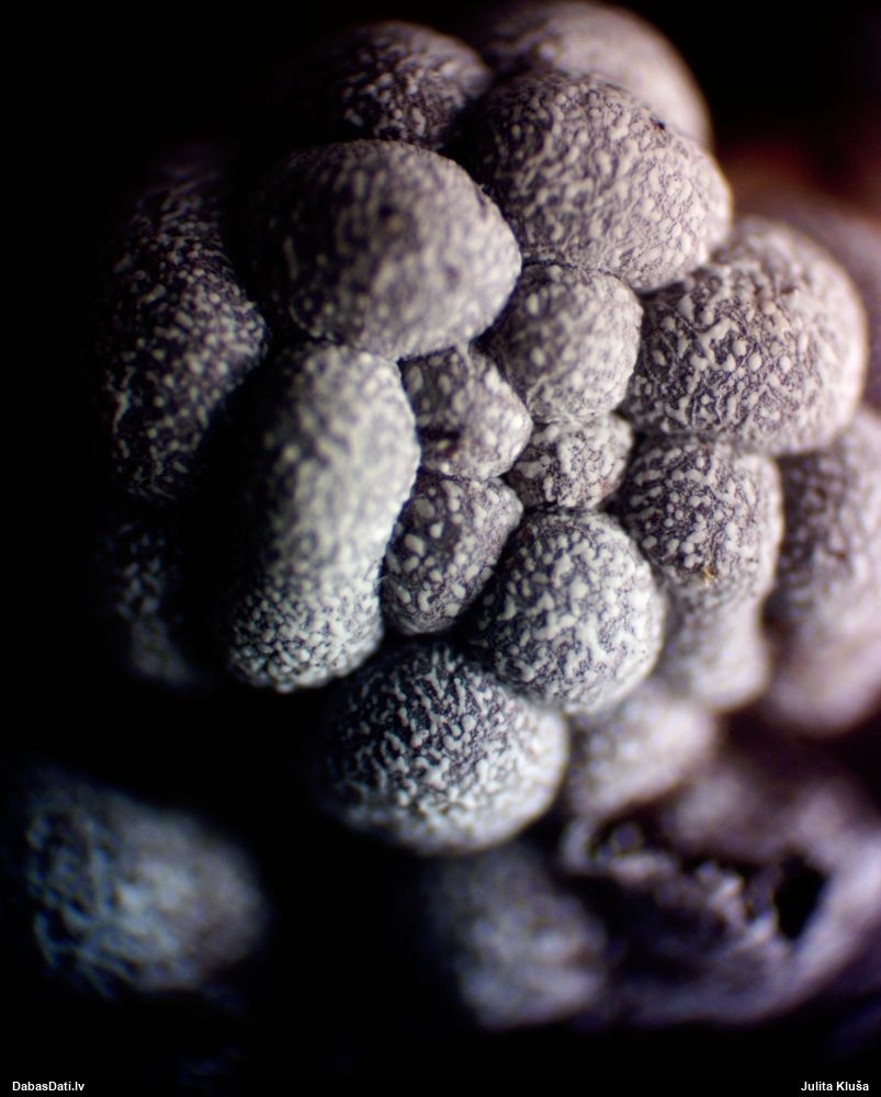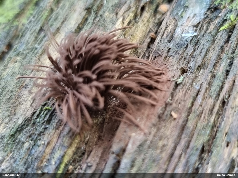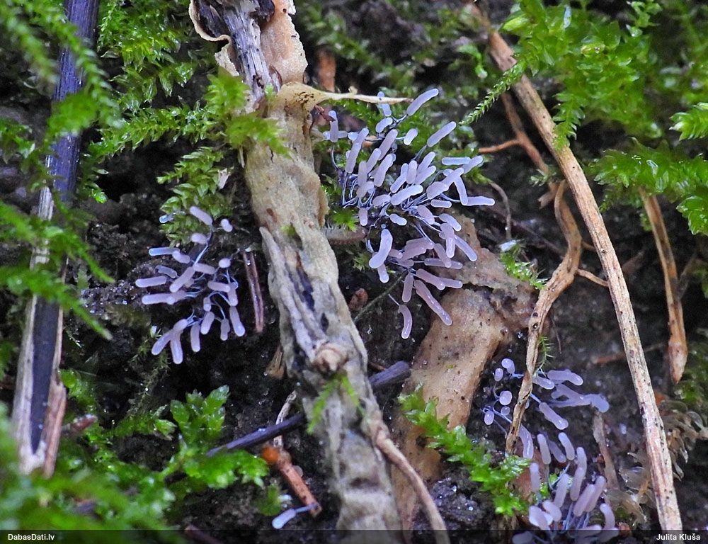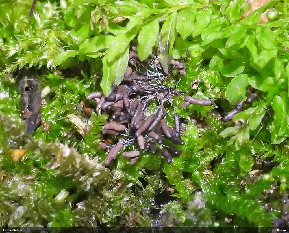 Vai tik nebūs medainā bumbulīte? Augļķermeņi vertikāli izstiepti, sporu mākonis ciešā klājienā.