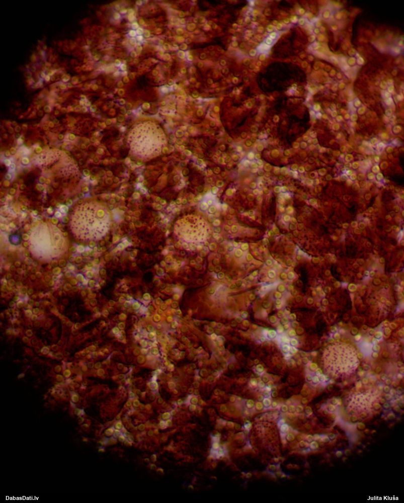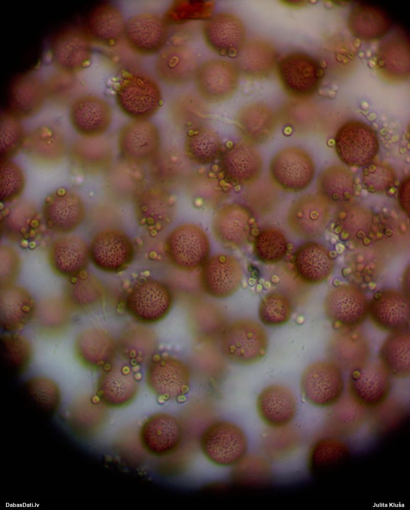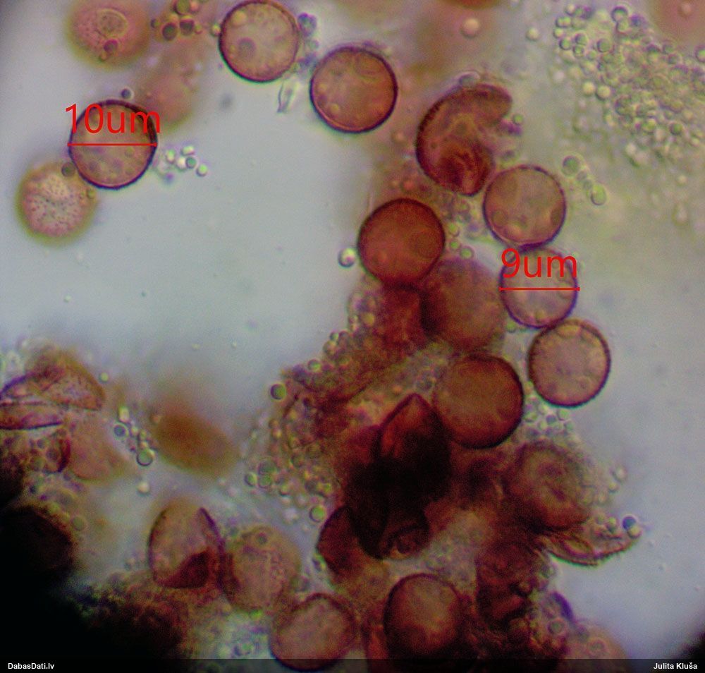 Sporas izskatās ļoti gaišas, varbūt nenobriedušas. Es laikam pēc kāda laiciņa mēģinātu vēlreiz mikroskopēt. Tajā pašā laikā sporu izmēri priekš T.contorta ir pamazi (ja tipiski ir 11-14 mkm, te ir knapi 11 mkm)