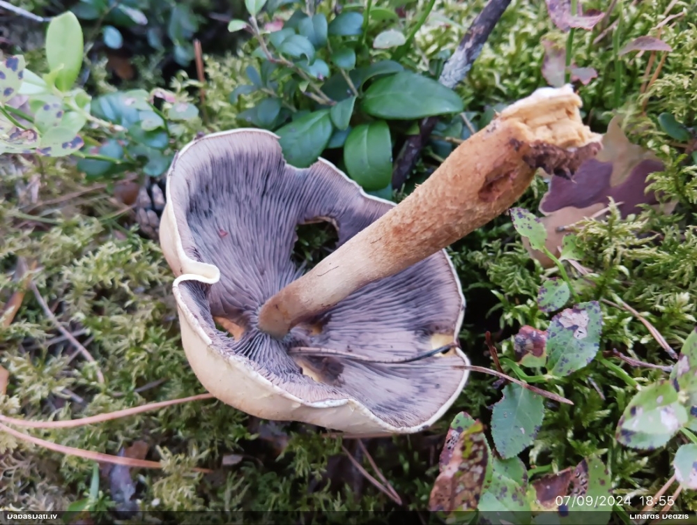 Liels paldies par paraugu! Mikroskopēju, viss kārtībā, kapilīcijs ir un suga pareiza. :) Un kā jau ir gadījies - tikko saņemu un apskatu paraugu, tā uzreiz ekspedīcijā izdodas atrast arī pašai (1 gab. augļķermeni :D). Ir pilnīgi droši, Raivo, bez Tava atraduma es arī nebūtu atradusi, jo uzmanību pievērsu, ka egle bija tieši tāda pati - slīpa un melna, tāpēc īpašs paldies par biotopa un substrāta bildēm! Kad ieraudzīju koka atbilstību, tad meklēju, kamēr atradu. :)