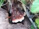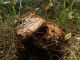 Satrūdējusi kritala mežā, nav dēļi. Iespējams, egle, jauktu koku mežs.