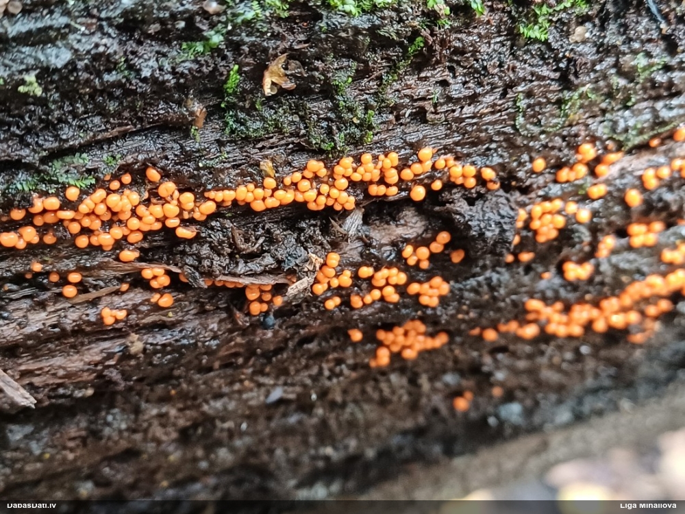 Šobrīd divas versijas - Physarum psittacinum un P.braunianum. Bez paraudziņa te skaidrīzā netiks, bet biotops interesants