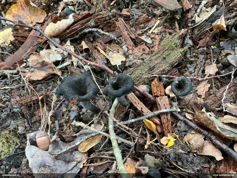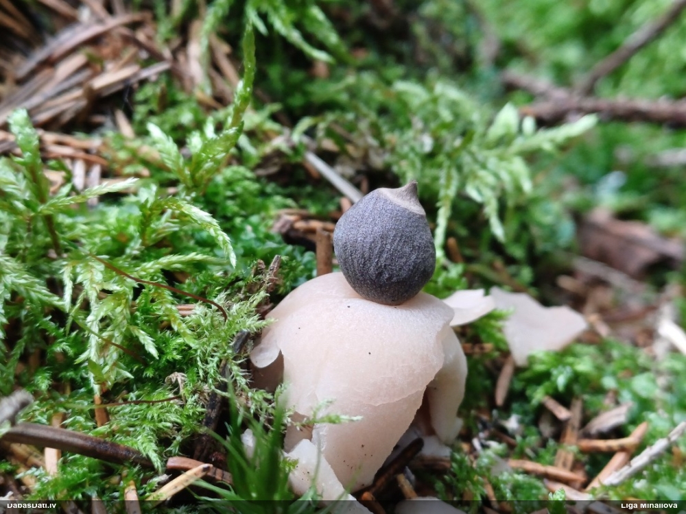 Vai tik nebūs medainā bumbulīte? Augļķermeņi vertikāli izstiepti, sporu mākonis ciešā klājienā.