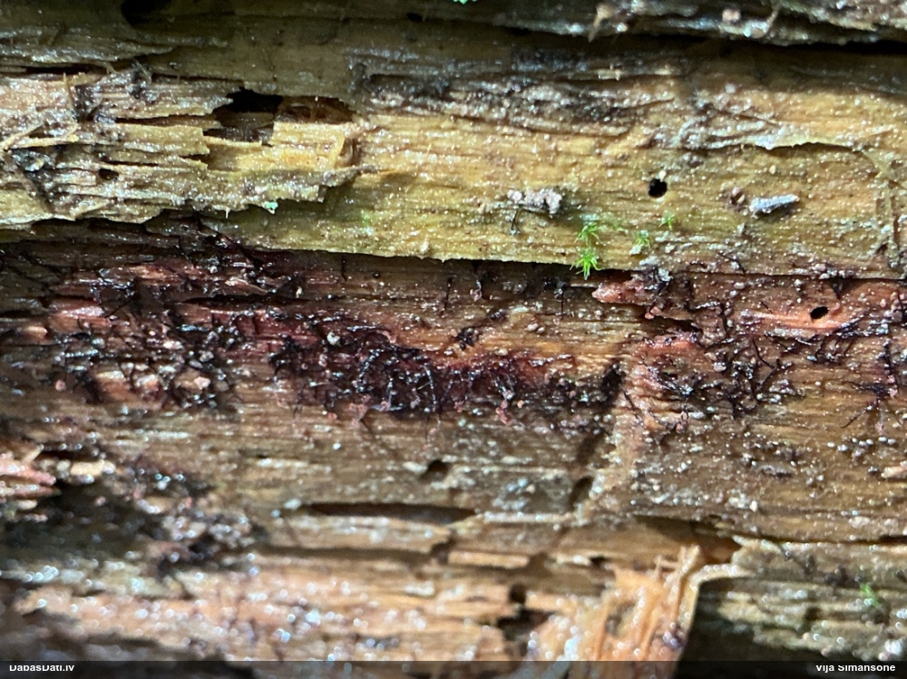 Liels paldies par paraugu! Mikroskopēju, viss kārtībā, kapilīcijs ir un suga pareiza. :) Un kā jau ir gadījies - tikko saņemu un apskatu paraugu, tā uzreiz ekspedīcijā izdodas atrast arī pašai (1 gab. augļķermeni :D). Ir pilnīgi droši, Raivo, bez Tava atraduma es arī nebūtu atradusi, jo uzmanību pievērsu, ka egle bija tieši tāda pati - slīpa un melna, tāpēc īpašs paldies par biotopa un substrāta bildēm! Kad ieraudzīju koka atbilstību, tad meklēju, kamēr atradu. :)