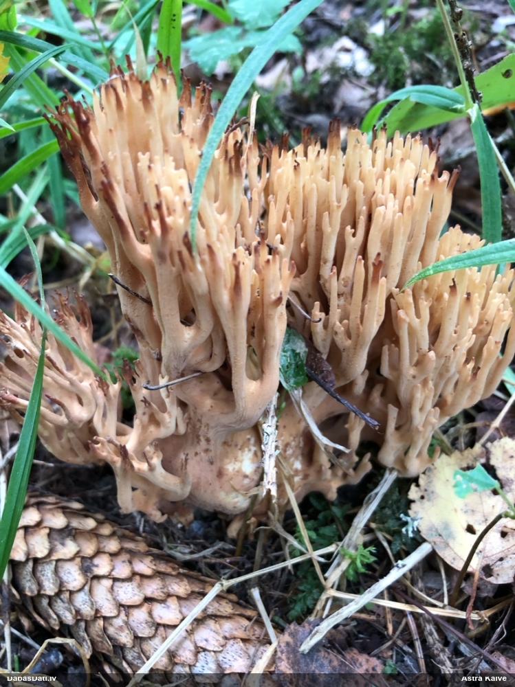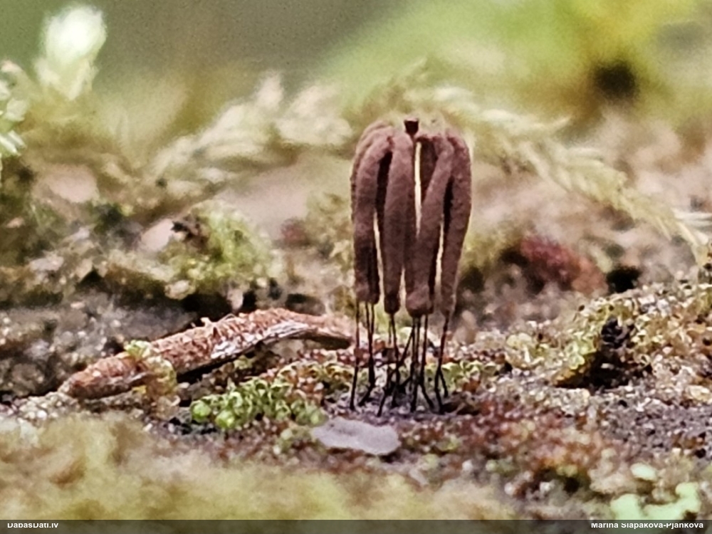 Vai tik nebūs medainā bumbulīte? Augļķermeņi vertikāli izstiepti, sporu mākonis ciešā klājienā.