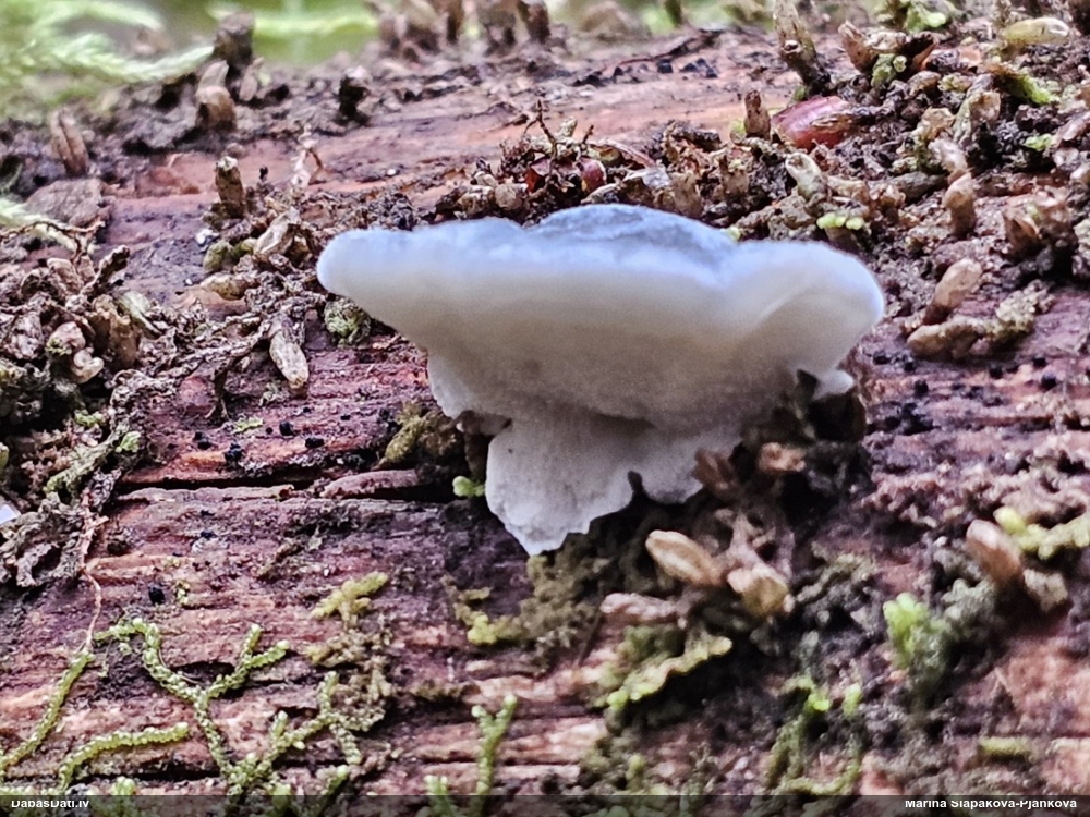 Liels paldies par paraugu! Mikroskopēju, viss kārtībā, kapilīcijs ir un suga pareiza. :) Un kā jau ir gadījies - tikko saņemu un apskatu paraugu, tā uzreiz ekspedīcijā izdodas atrast arī pašai (1 gab. augļķermeni :D). Ir pilnīgi droši, Raivo, bez Tava atraduma es arī nebūtu atradusi, jo uzmanību pievērsu, ka egle bija tieši tāda pati - slīpa un melna, tāpēc īpašs paldies par biotopa un substrāta bildēm! Kad ieraudzīju koka atbilstību, tad meklēju, kamēr atradu. :)
