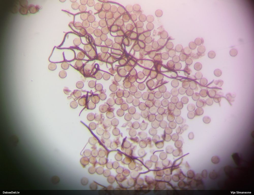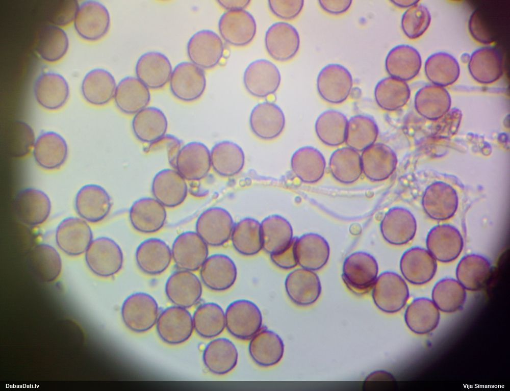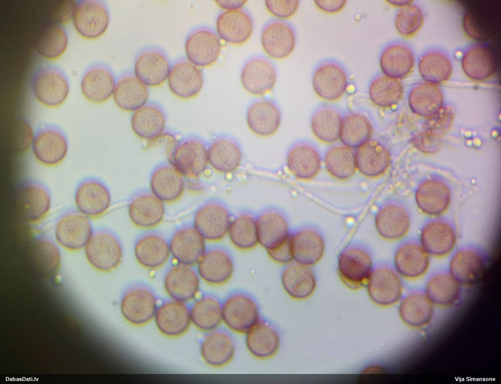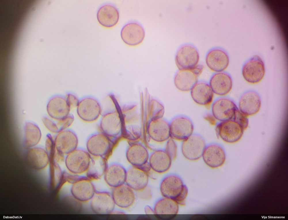 Sporas izskatās ļoti gaišas, varbūt nenobriedušas. Es laikam pēc kāda laiciņa mēģinātu vēlreiz mikroskopēt. Tajā pašā laikā sporu izmēri priekš T.contorta ir pamazi (ja tipiski ir 11-14 mkm, te ir knapi 11 mkm)