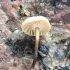 Man pēkšņi radās ideja - vai tur bija nu ļoti mitrs mikroklimats, egle ar melnalksni? Hipotētiski tādas dzeltenas var būt Diachea muscorum. Te bilde ir mazliet līdzīga: https://fr.wikipedia.org/wiki/Fichier:Craterium_muscorum,_Trawscoed,_North_Wales,_Aug_2016_-_Flickr_-_janetgraham84.jpg