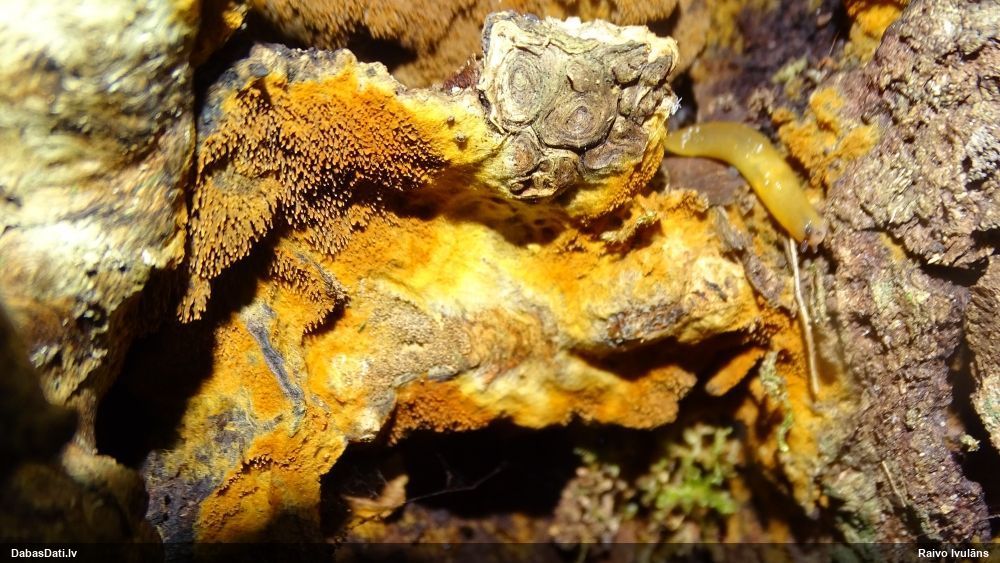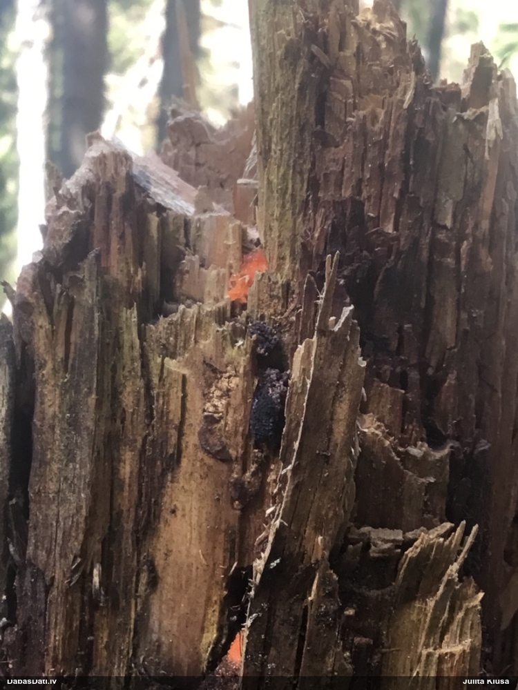 Liels paldies par paraugu! Mikroskopēju, viss kārtībā, kapilīcijs ir un suga pareiza. :) Un kā jau ir gadījies - tikko saņemu un apskatu paraugu, tā uzreiz ekspedīcijā izdodas atrast arī pašai (1 gab. augļķermeni :D). Ir pilnīgi droši, Raivo, bez Tava atraduma es arī nebūtu atradusi, jo uzmanību pievērsu, ka egle bija tieši tāda pati - slīpa un melna, tāpēc īpašs paldies par biotopa un substrāta bildēm! Kad ieraudzīju koka atbilstību, tad meklēju, kamēr atradu. :)