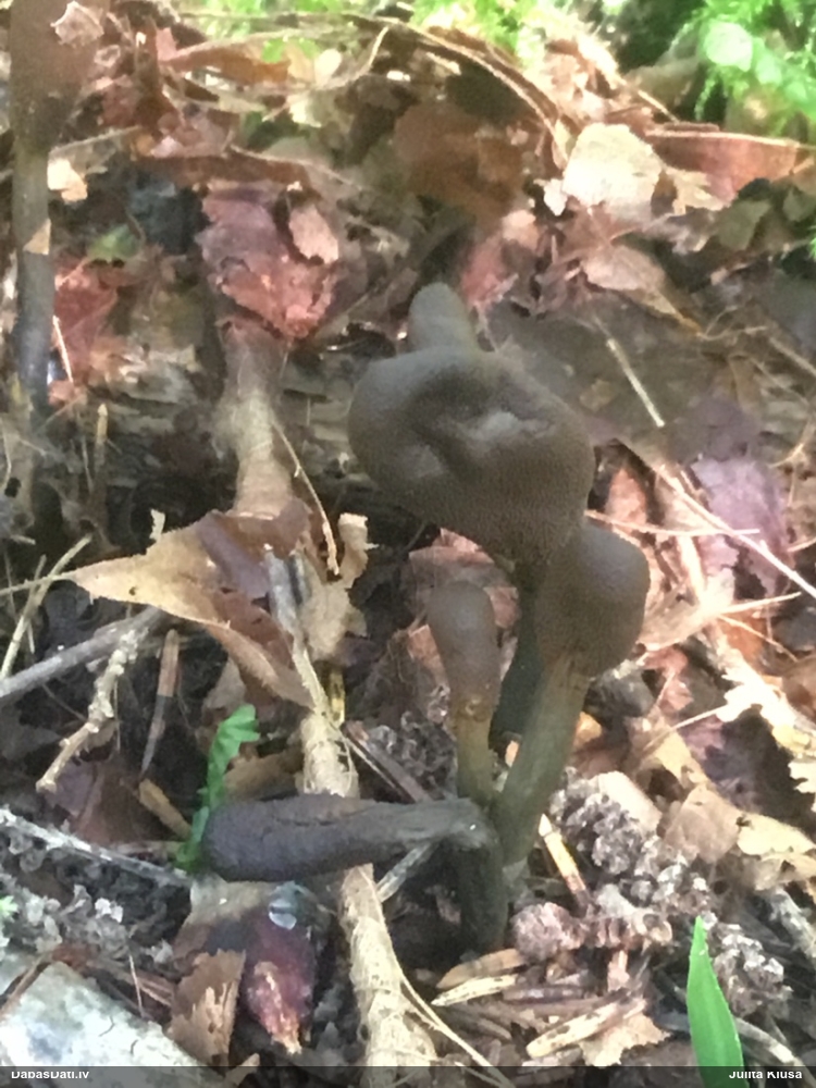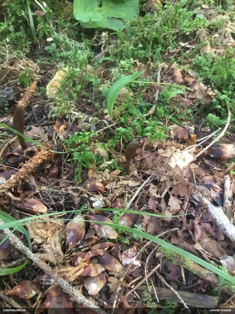 Vai tik nebūs medainā bumbulīte? Augļķermeņi vertikāli izstiepti, sporu mākonis ciešā klājienā.