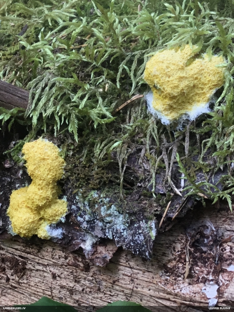 Šobrīd divas versijas - Physarum psittacinum un P.braunianum. Bez paraudziņa te skaidrīzā netiks, bet biotops interesants