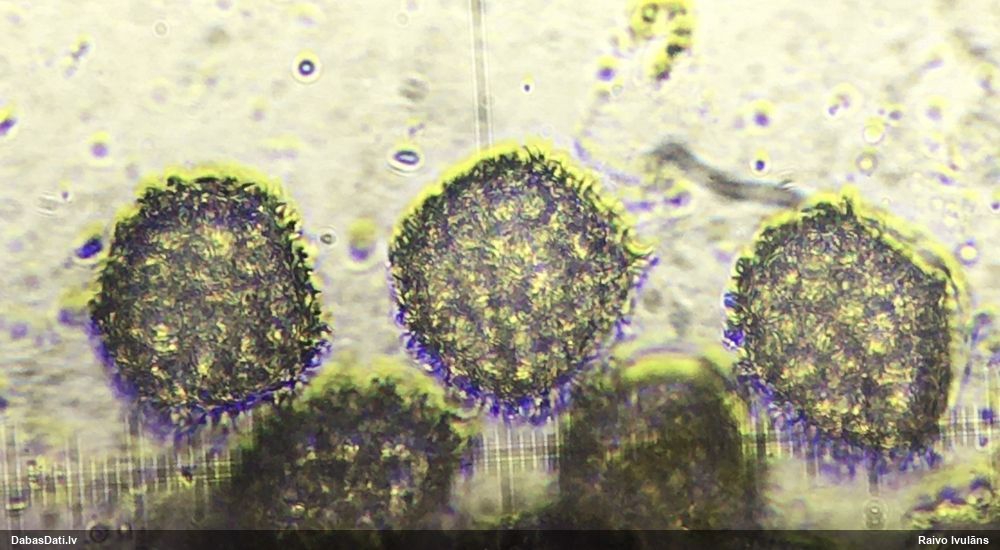 Sporas izskatās ļoti gaišas, varbūt nenobriedušas. Es laikam pēc kāda laiciņa mēģinātu vēlreiz mikroskopēt. Tajā pašā laikā sporu izmēri priekš T.contorta ir pamazi (ja tipiski ir 11-14 mkm, te ir knapi 11 mkm)