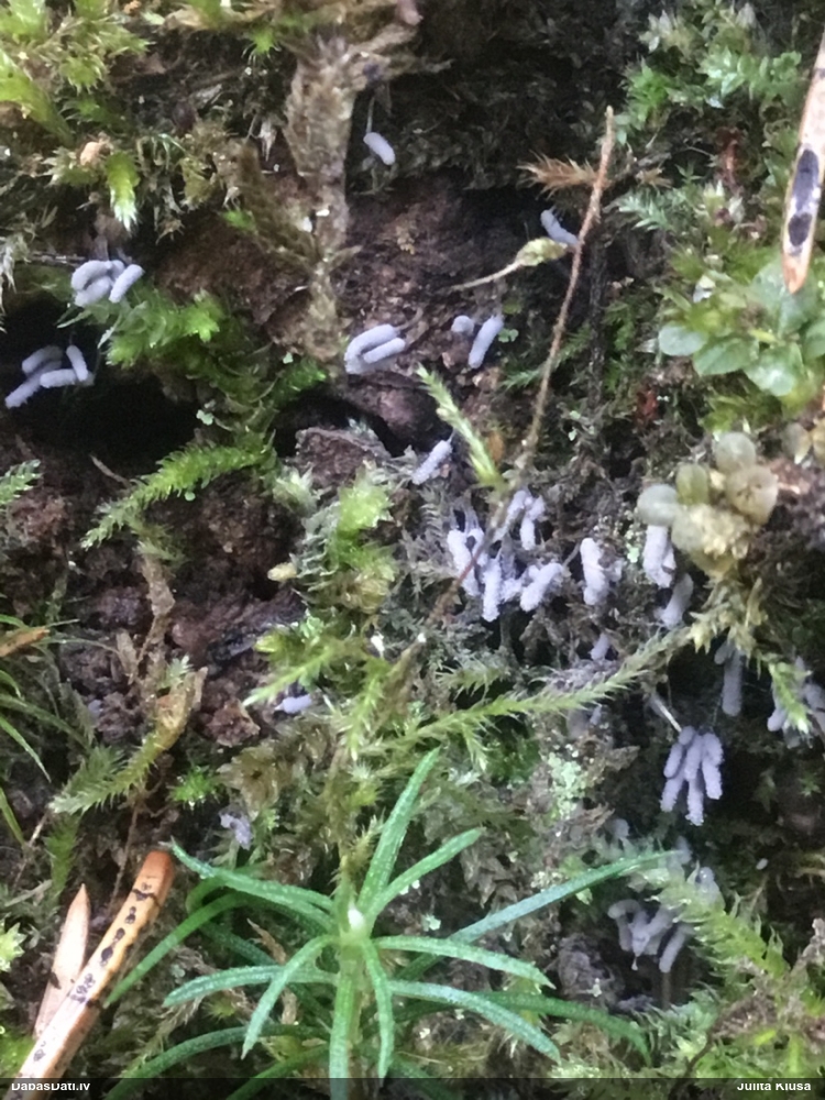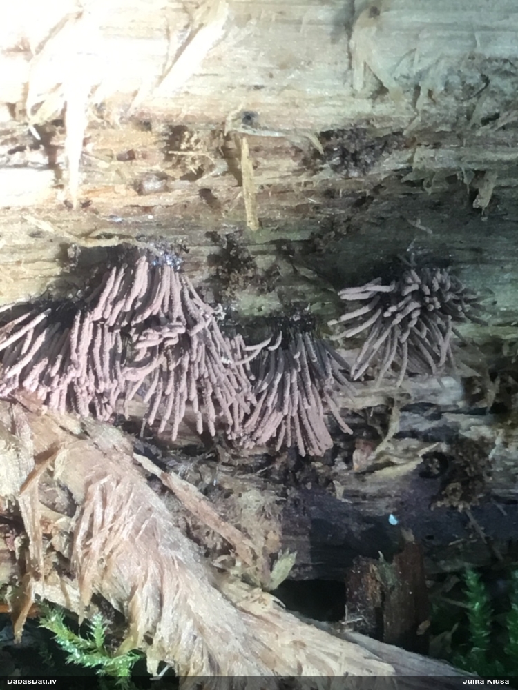 Vai tik nebūs medainā bumbulīte? Augļķermeņi vertikāli izstiepti, sporu mākonis ciešā klājienā.