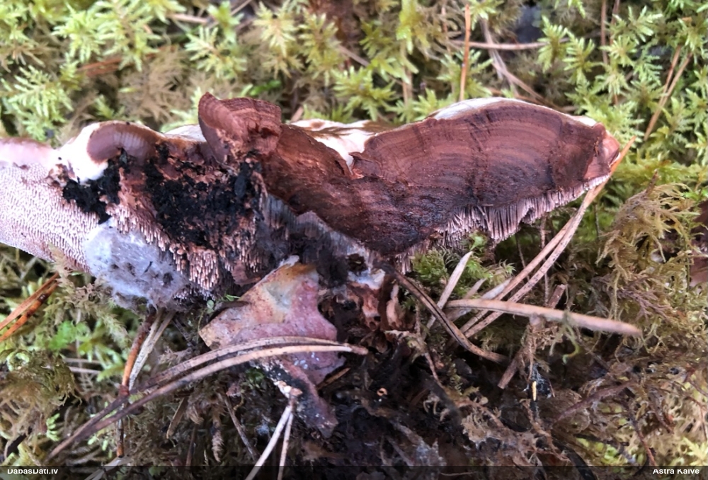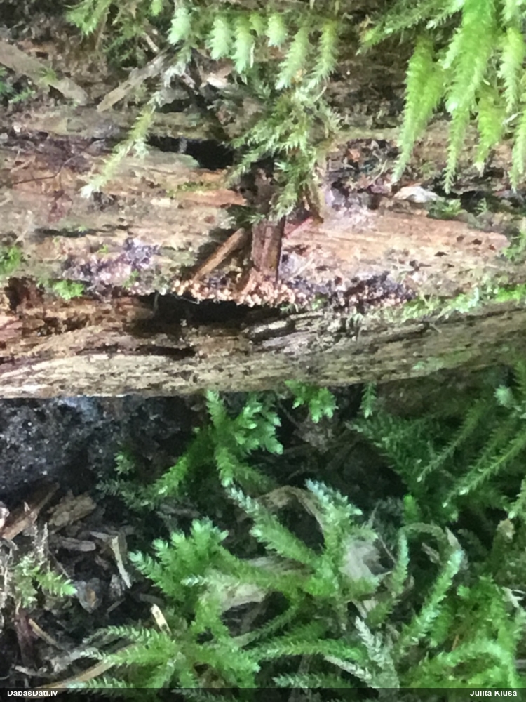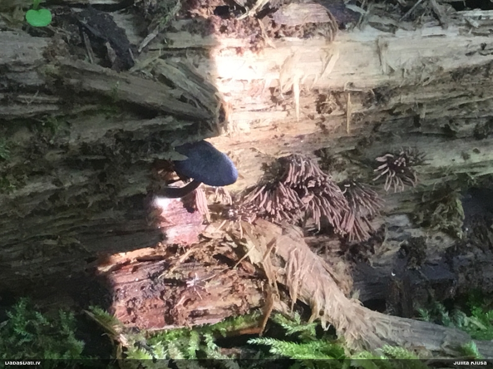 Liels paldies par paraugu! Mikroskopēju, viss kārtībā, kapilīcijs ir un suga pareiza. :) Un kā jau ir gadījies - tikko saņemu un apskatu paraugu, tā uzreiz ekspedīcijā izdodas atrast arī pašai (1 gab. augļķermeni :D). Ir pilnīgi droši, Raivo, bez Tava atraduma es arī nebūtu atradusi, jo uzmanību pievērsu, ka egle bija tieši tāda pati - slīpa un melna, tāpēc īpašs paldies par biotopa un substrāta bildēm! Kad ieraudzīju koka atbilstību, tad meklēju, kamēr atradu. :)