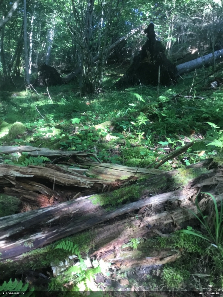 Man liekas, ka bija jaukts priežu/egļu mežs, bet pamitrs, jo laukumiem bija sfagni. Apskatīšos, vai ir saglabājušies foto.