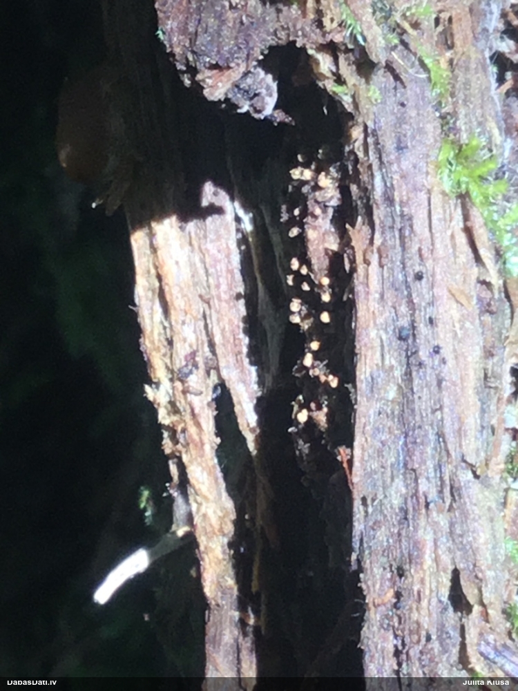 Paldies, Mārīt! Nu īsti nevar :D. Kamēr nemikroskopēju, pārliecības nebija. Normāli būtu, ja tādi augtu čupiņā (un tā tiem vajadzētu augt), tad būtu ieraugāms un saprotams. Bet nu viens gab. ir tā kā ir. :) Laimējās! Paldies Raivo, kurš ierādīja, tieši uz kādiem kokiem jāmeklē.