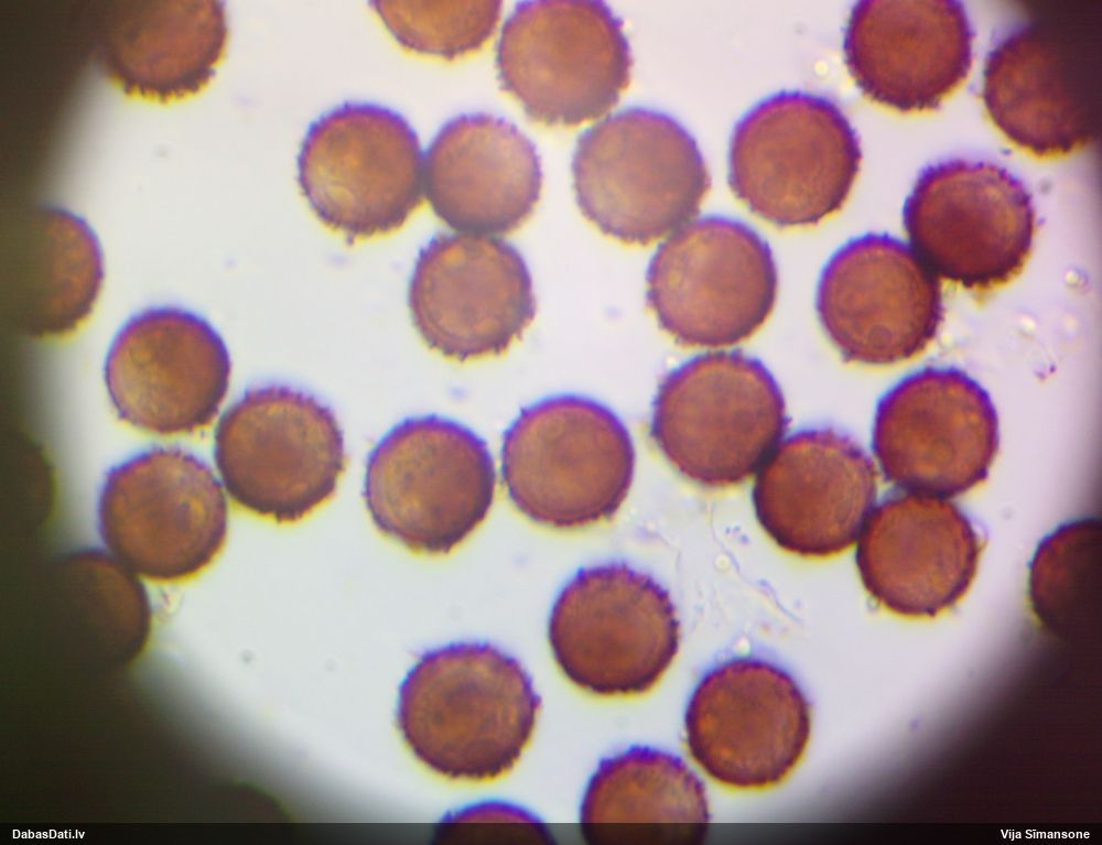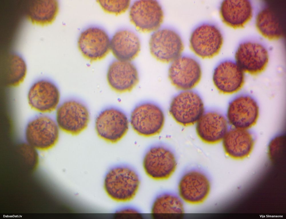 Sporas izskatās ļoti gaišas, varbūt nenobriedušas. Es laikam pēc kāda laiciņa mēģinātu vēlreiz mikroskopēt. Tajā pašā laikā sporu izmēri priekš T.contorta ir pamazi (ja tipiski ir 11-14 mkm, te ir knapi 11 mkm)