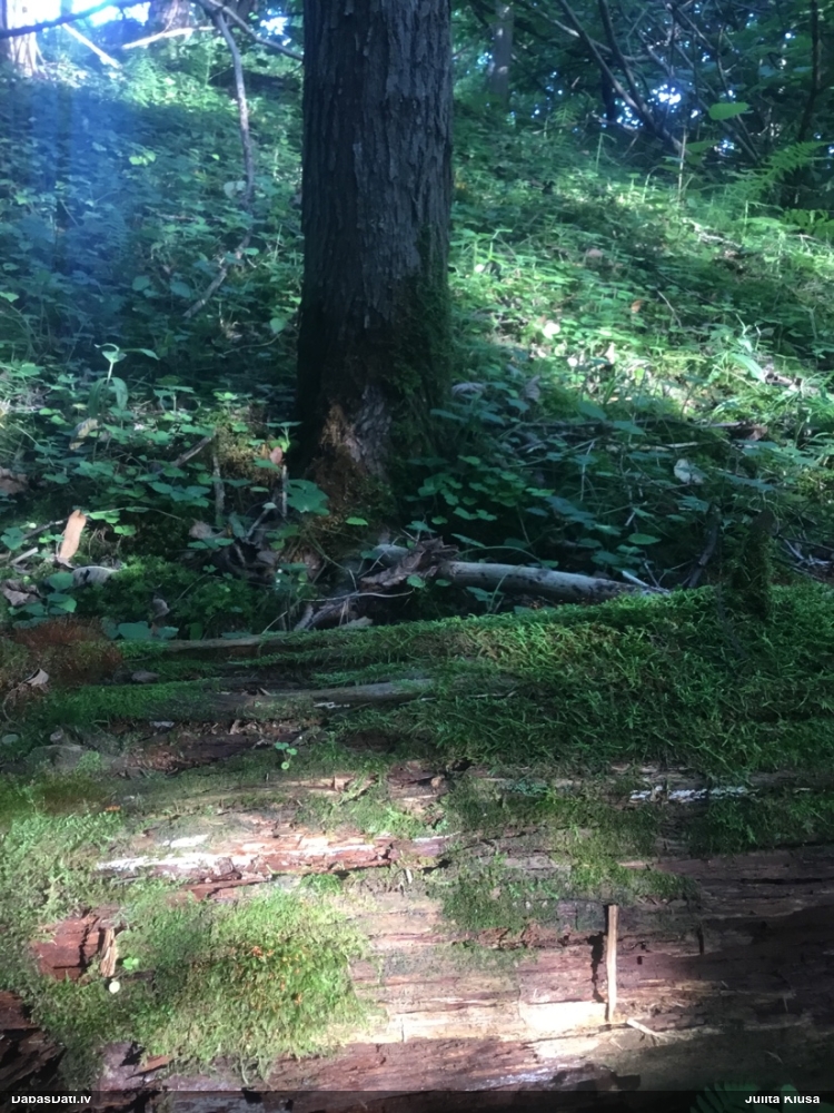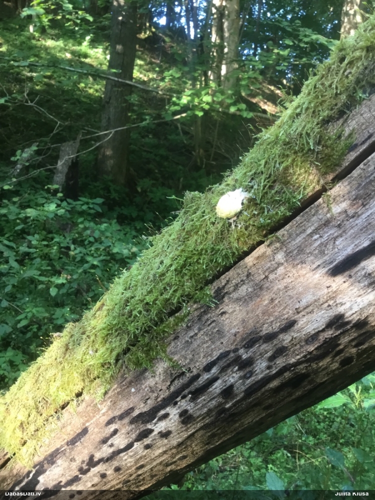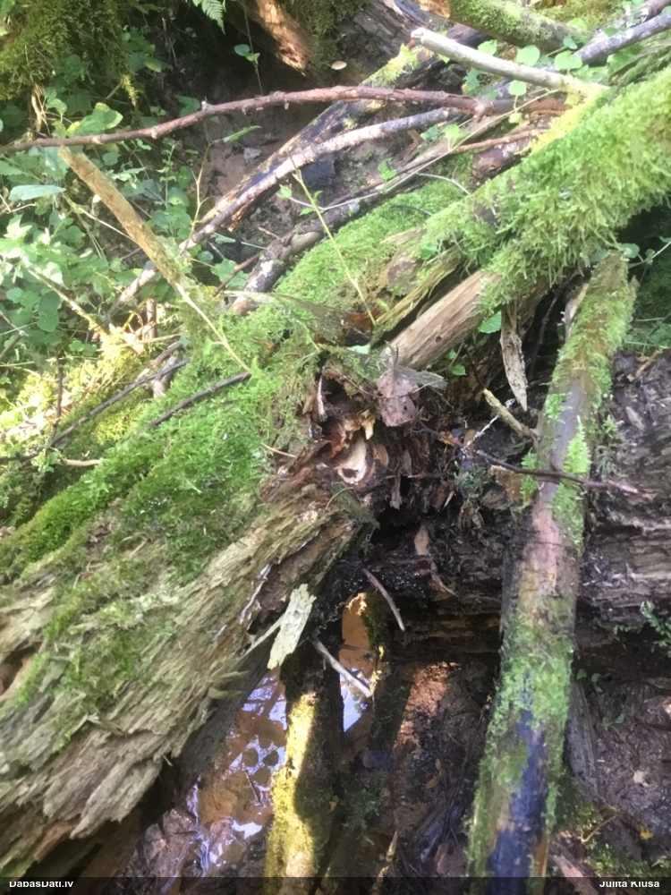 Satrūdējusi kritala mežā, nav dēļi. Iespējams, egle, jauktu koku mežs.