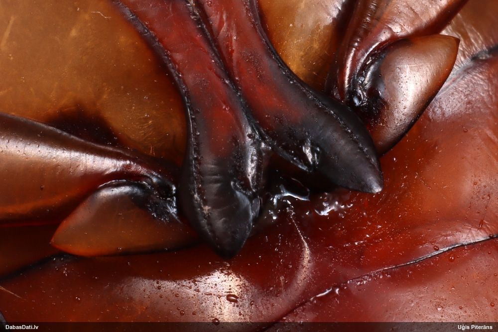 Liels paldies par paraugu! Mikroskopēju, viss kārtībā, kapilīcijs ir un suga pareiza. :) Un kā jau ir gadījies - tikko saņemu un apskatu paraugu, tā uzreiz ekspedīcijā izdodas atrast arī pašai (1 gab. augļķermeni :D). Ir pilnīgi droši, Raivo, bez Tava atraduma es arī nebūtu atradusi, jo uzmanību pievērsu, ka egle bija tieši tāda pati - slīpa un melna, tāpēc īpašs paldies par biotopa un substrāta bildēm! Kad ieraudzīju koka atbilstību, tad meklēju, kamēr atradu. :)