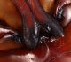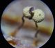 Vai tik nebūs medainā bumbulīte? Augļķermeņi vertikāli izstiepti, sporu mākonis ciešā klājienā.