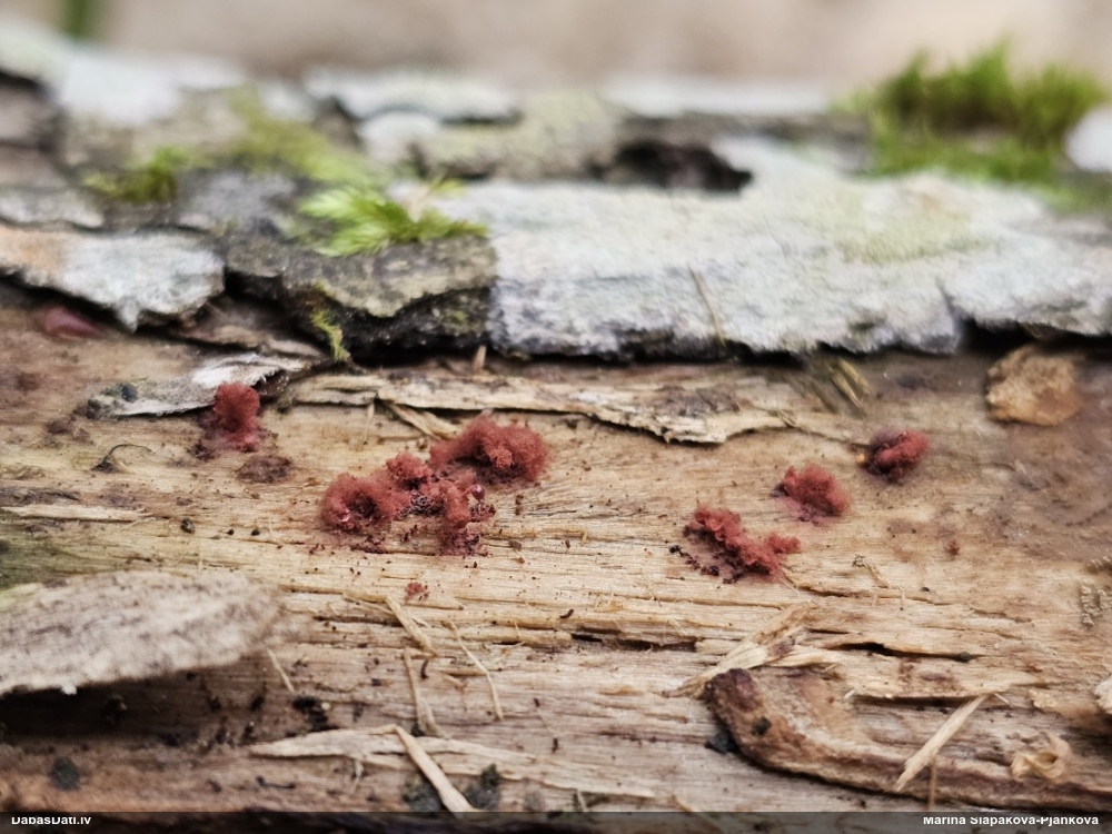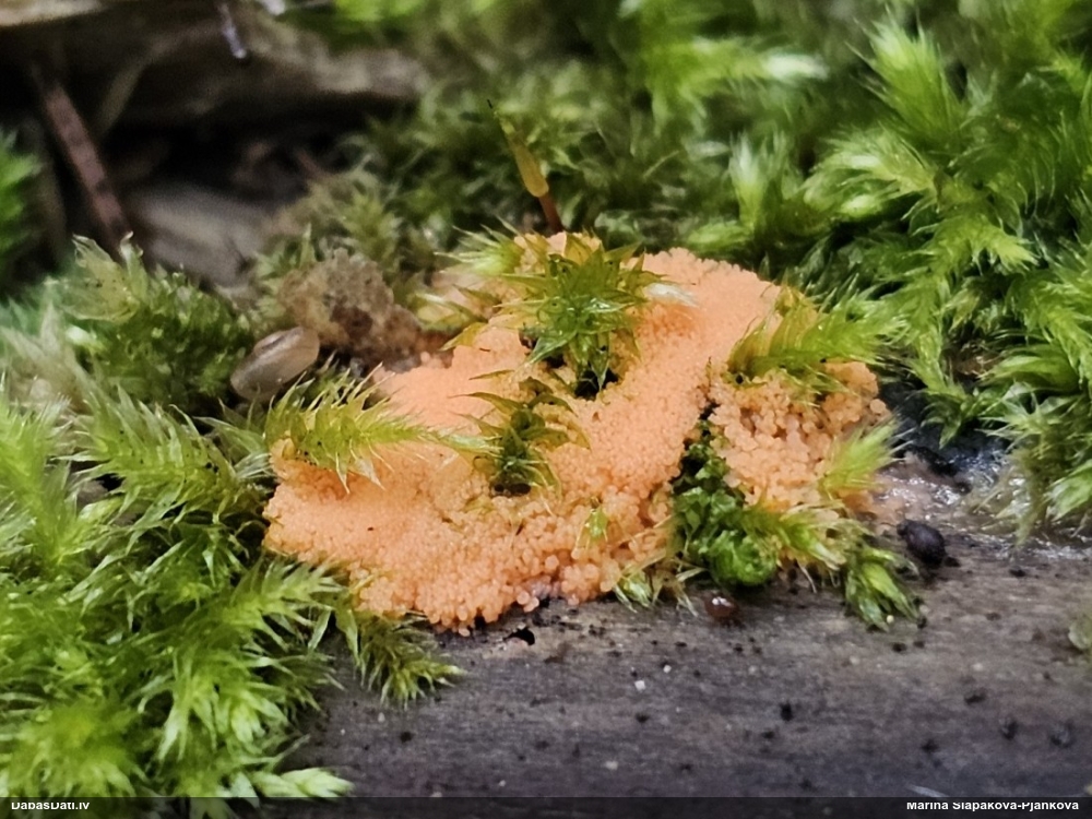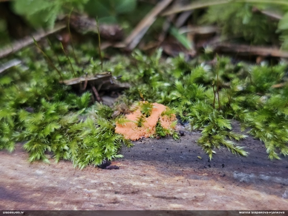 Šobrīd divas versijas - Physarum psittacinum un P.braunianum. Bez paraudziņa te skaidrīzā netiks, bet biotops interesants