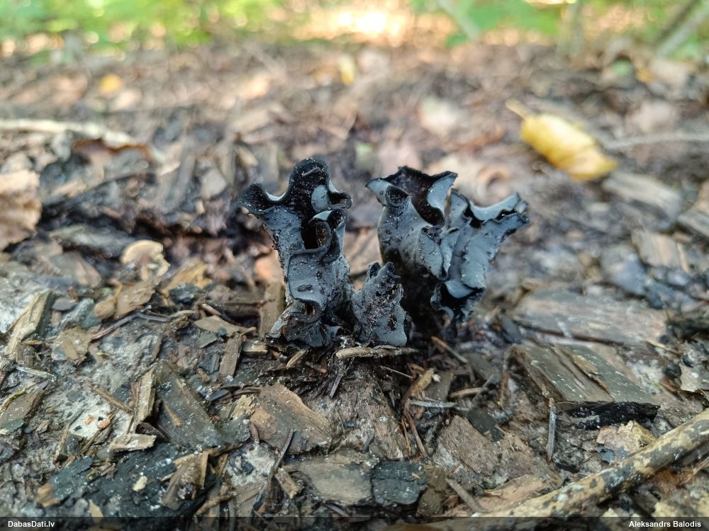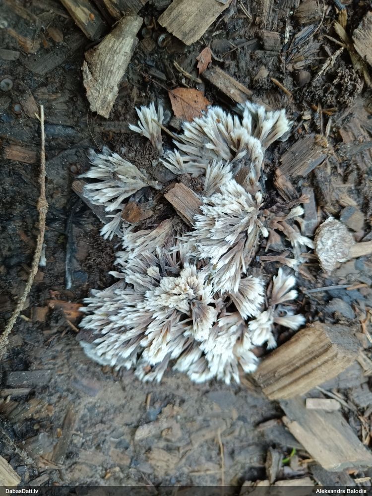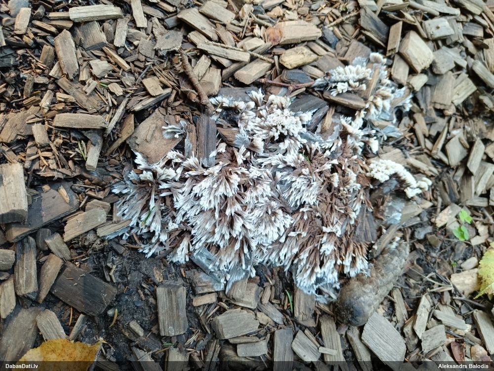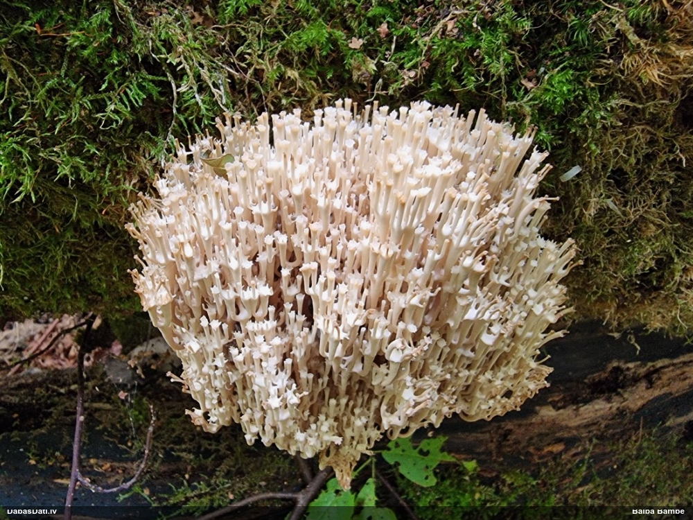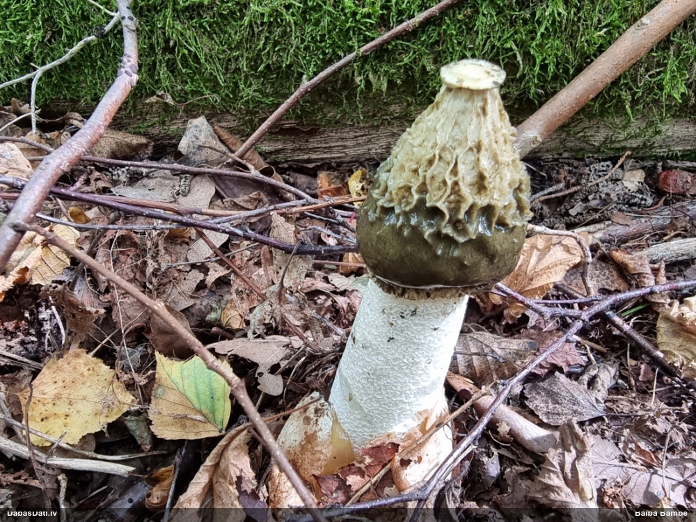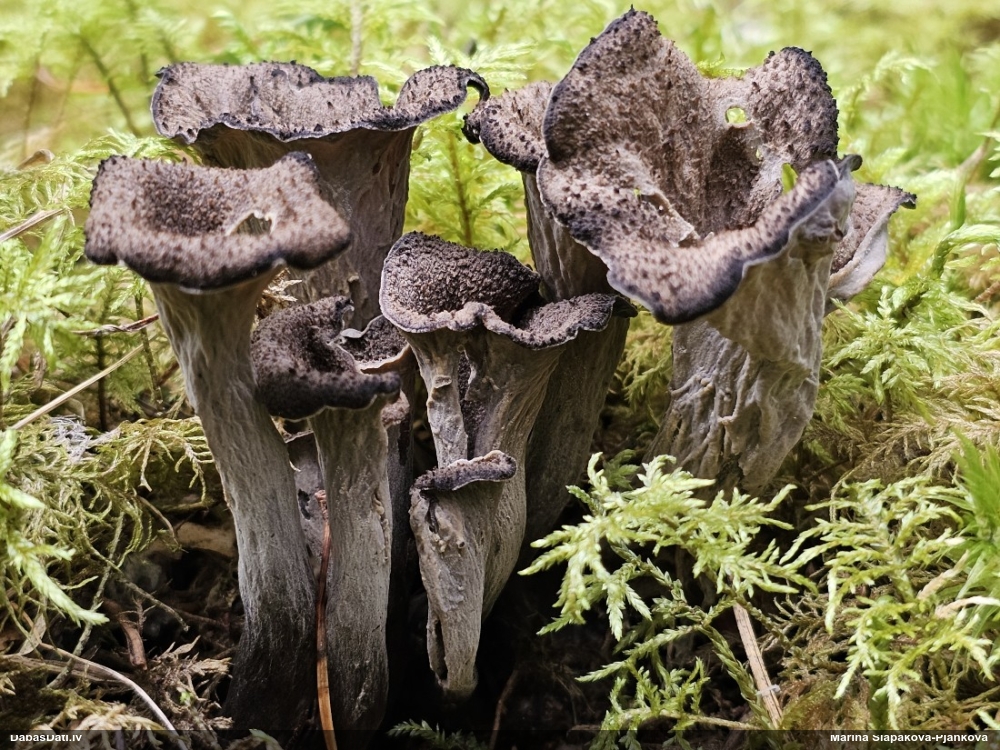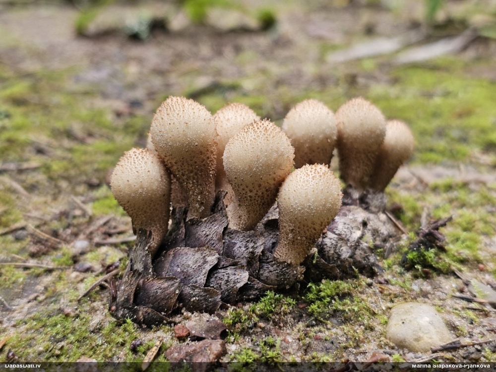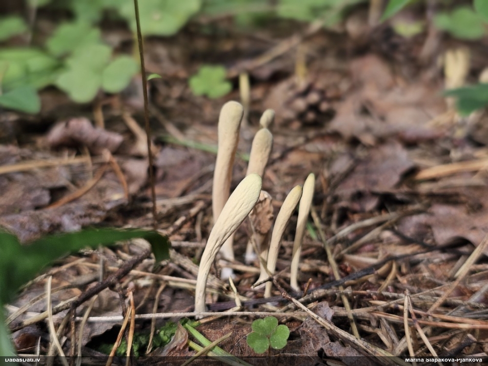 Vai tik nebūs medainā bumbulīte? Augļķermeņi vertikāli izstiepti, sporu mākonis ciešā klājienā.