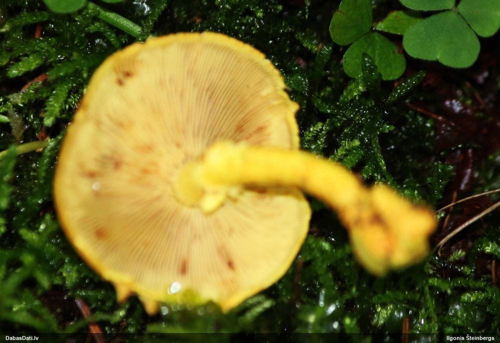 Liels paldies par paraugu! Mikroskopēju, viss kārtībā, kapilīcijs ir un suga pareiza. :) Un kā jau ir gadījies - tikko saņemu un apskatu paraugu, tā uzreiz ekspedīcijā izdodas atrast arī pašai (1 gab. augļķermeni :D). Ir pilnīgi droši, Raivo, bez Tava atraduma es arī nebūtu atradusi, jo uzmanību pievērsu, ka egle bija tieši tāda pati - slīpa un melna, tāpēc īpašs paldies par biotopa un substrāta bildēm! Kad ieraudzīju koka atbilstību, tad meklēju, kamēr atradu. :)
