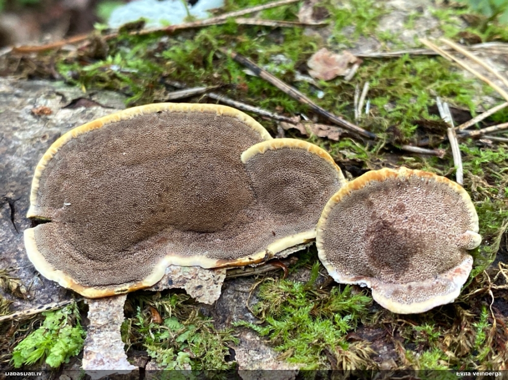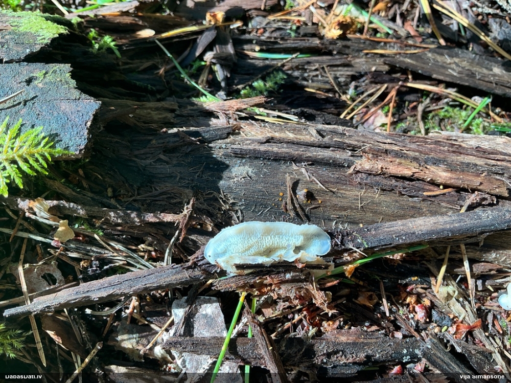 Liels paldies par paraugu! Mikroskopēju, viss kārtībā, kapilīcijs ir un suga pareiza. :) Un kā jau ir gadījies - tikko saņemu un apskatu paraugu, tā uzreiz ekspedīcijā izdodas atrast arī pašai (1 gab. augļķermeni :D). Ir pilnīgi droši, Raivo, bez Tava atraduma es arī nebūtu atradusi, jo uzmanību pievērsu, ka egle bija tieši tāda pati - slīpa un melna, tāpēc īpašs paldies par biotopa un substrāta bildēm! Kad ieraudzīju koka atbilstību, tad meklēju, kamēr atradu. :)