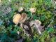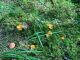Man pēkšņi radās ideja - vai tur bija nu ļoti mitrs mikroklimats, egle ar melnalksni? Hipotētiski tādas dzeltenas var būt Diachea muscorum. Te bilde ir mazliet līdzīga: https://fr.wikipedia.org/wiki/Fichier:Craterium_muscorum,_Trawscoed,_North_Wales,_Aug_2016_-_Flickr_-_janetgraham84.jpg