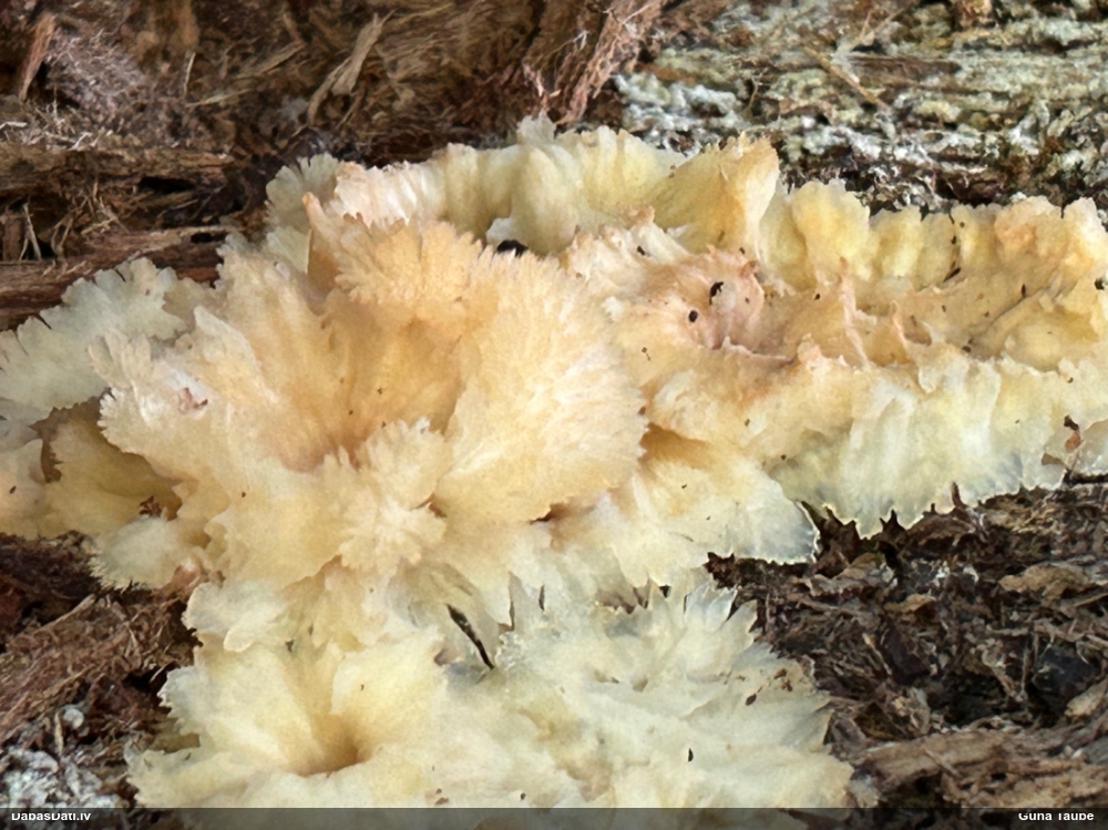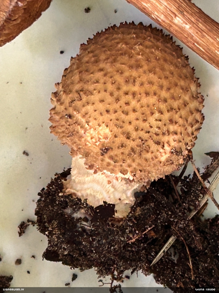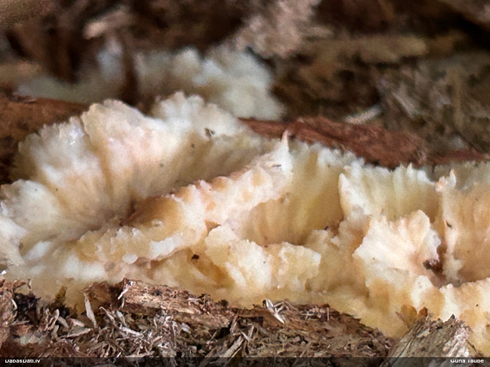 Liels paldies par paraugu! Mikroskopēju, viss kārtībā, kapilīcijs ir un suga pareiza. :) Un kā jau ir gadījies - tikko saņemu un apskatu paraugu, tā uzreiz ekspedīcijā izdodas atrast arī pašai (1 gab. augļķermeni :D). Ir pilnīgi droši, Raivo, bez Tava atraduma es arī nebūtu atradusi, jo uzmanību pievērsu, ka egle bija tieši tāda pati - slīpa un melna, tāpēc īpašs paldies par biotopa un substrāta bildēm! Kad ieraudzīju koka atbilstību, tad meklēju, kamēr atradu. :)