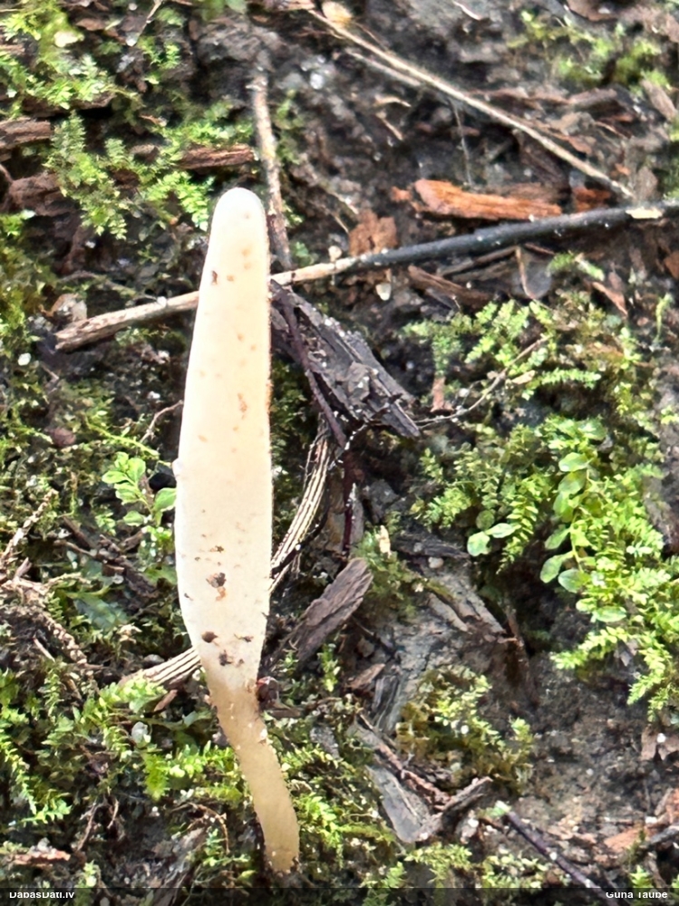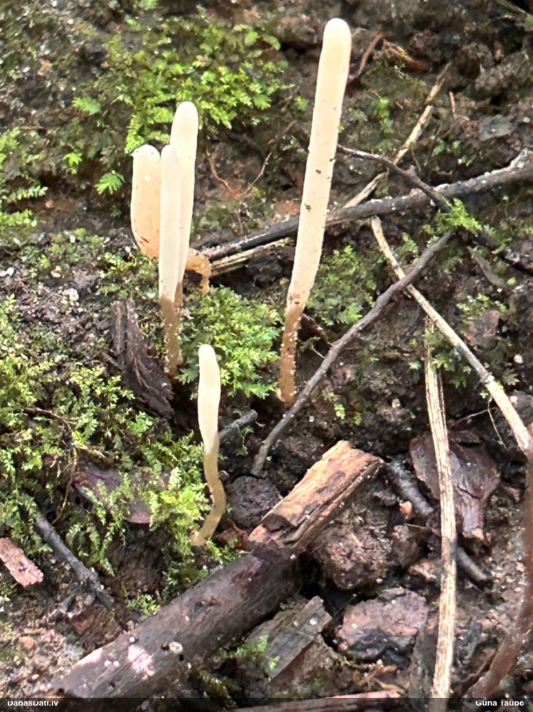 Vai tik nebūs medainā bumbulīte? Augļķermeņi vertikāli izstiepti, sporu mākonis ciešā klājienā.