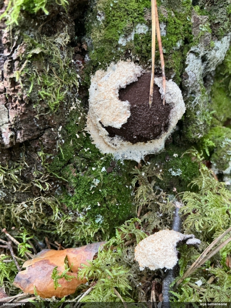 Cukurīte (Didymium) vai pumpurīte (Physarum)? Man galviņas virsma šķiet vairāk kā cukurītei, bet uz sēnes .. pieredze ar pumpurītēm.