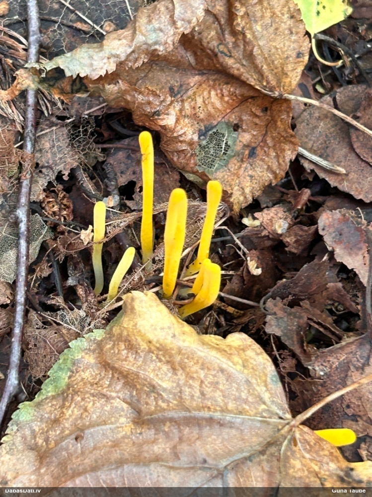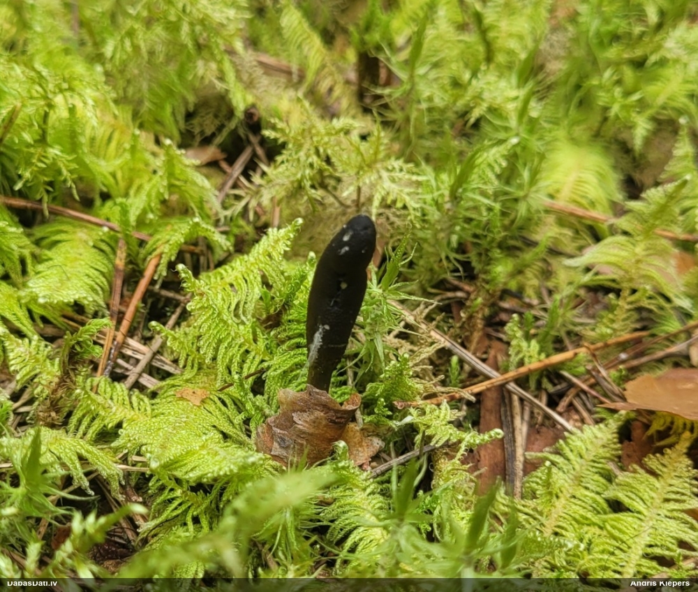 Vai tik nebūs medainā bumbulīte? Augļķermeņi vertikāli izstiepti, sporu mākonis ciešā klājienā.
