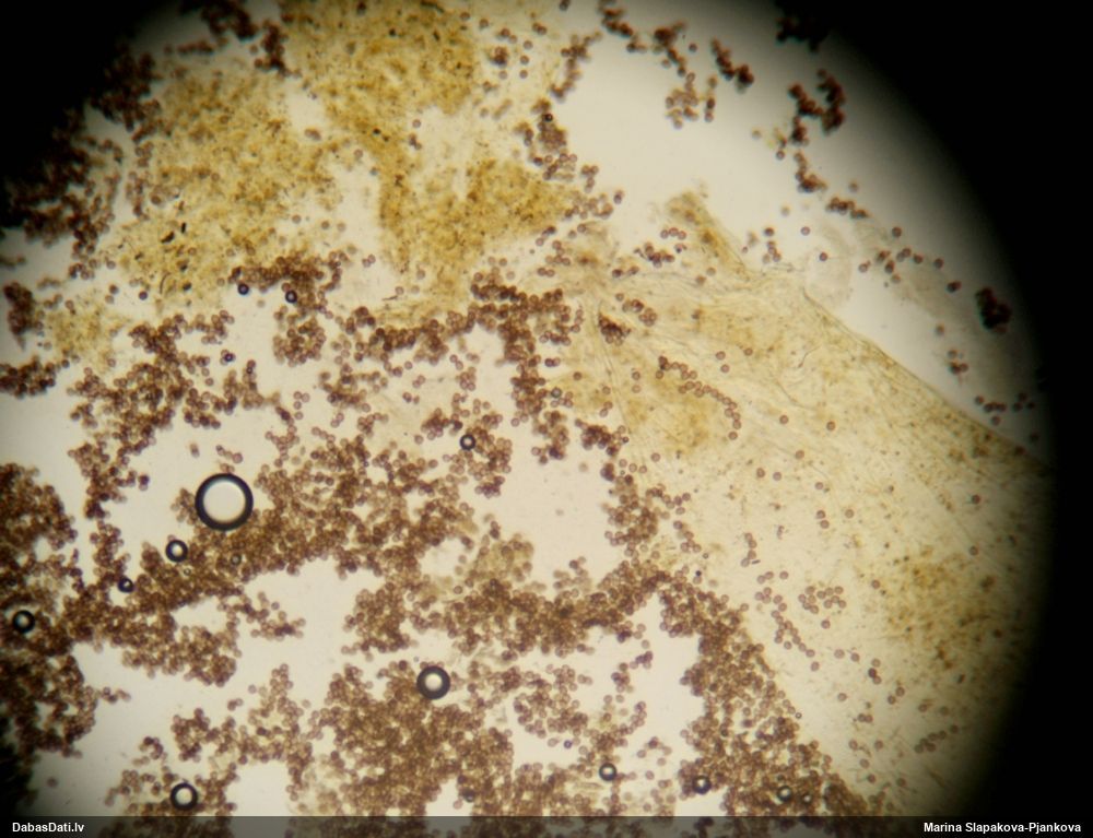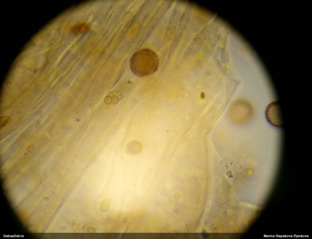 Raivo, šo mikroskopēju, ir līdzīgs Diderma tigrinum, bet es vēl pārskatīšu variantus. Taču jautājums ir par trešo paraugu - pilienīti 8.03.2026., ko nevaru Dabasdatos atrast (tajā datumā no gļotsēnēm tikai purpura lākturīte). Vai sajaukts datums, vai nav Dabasdatos vispār? Man pirms mikroskopēšanas vajag, lai novērojums ir dabasdatos, lai es redzu foto dabā un varu uzreiz rakstīt mikroskopēšanas piezīmes, un piereģistrēt sev, kur Dabasdatos viss apraksts ir atrodams.