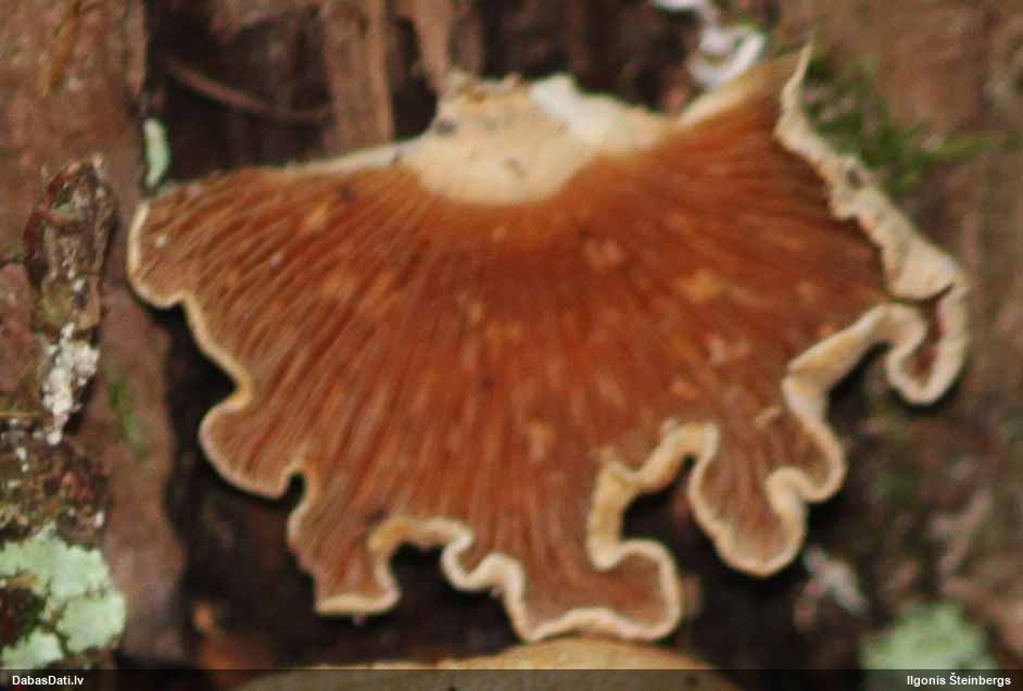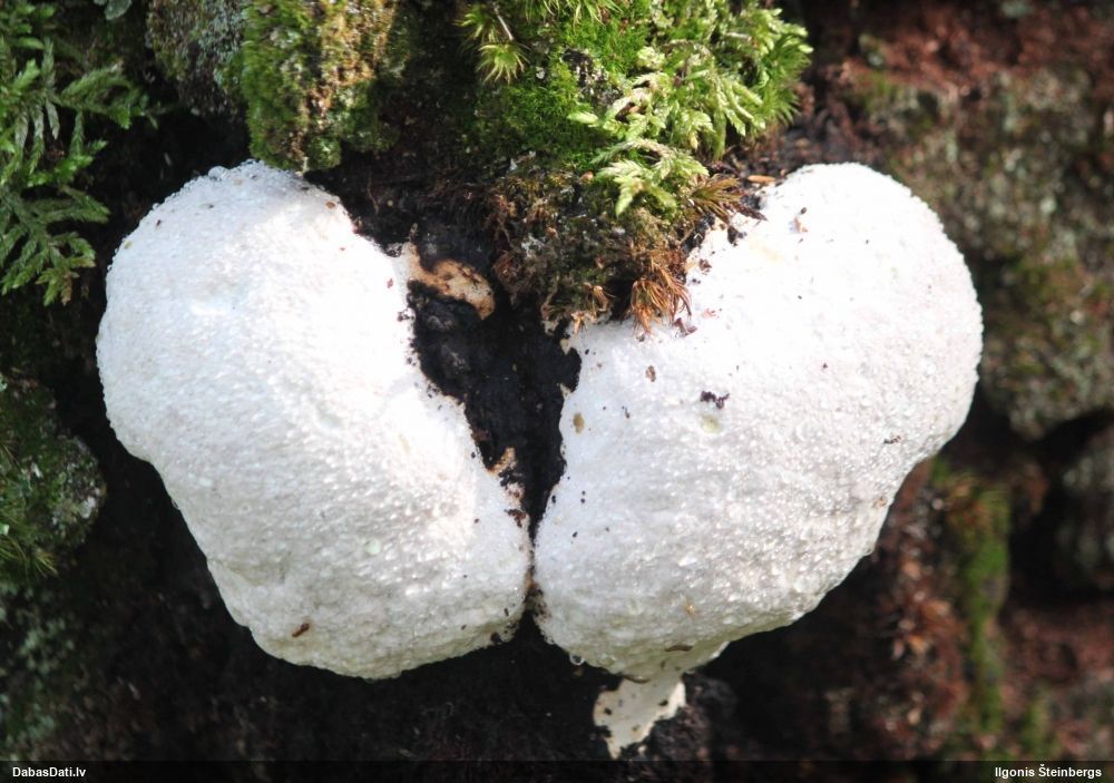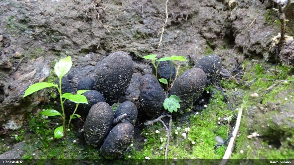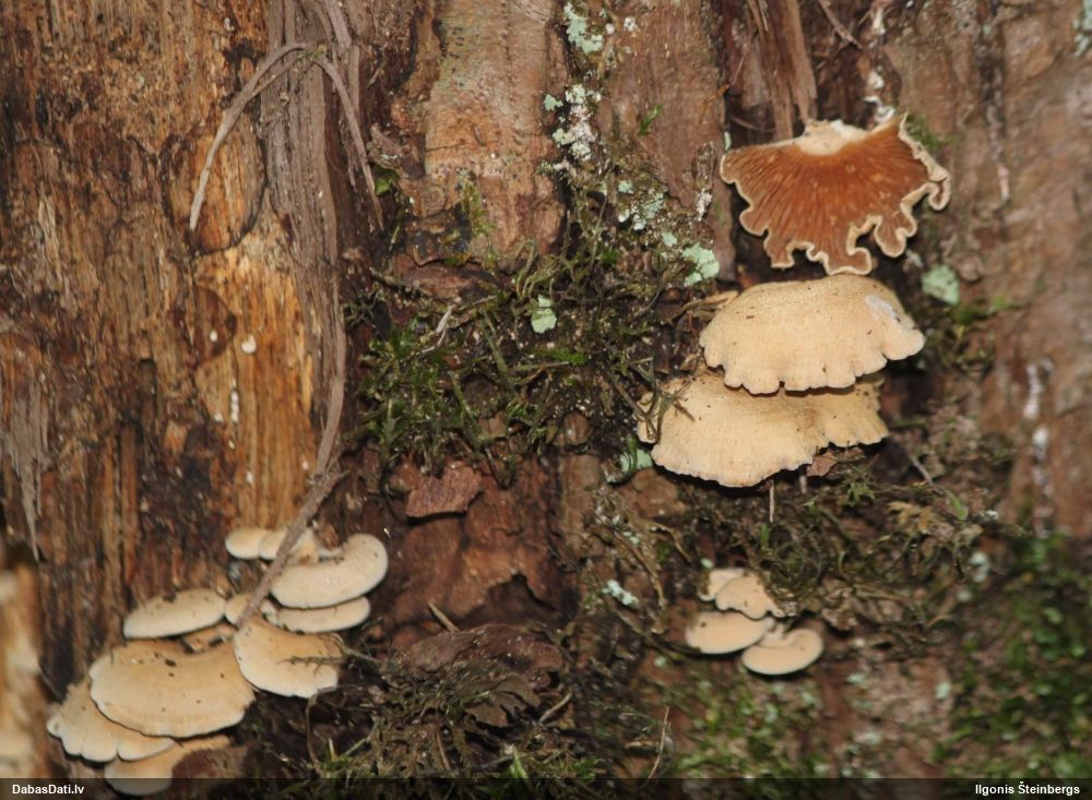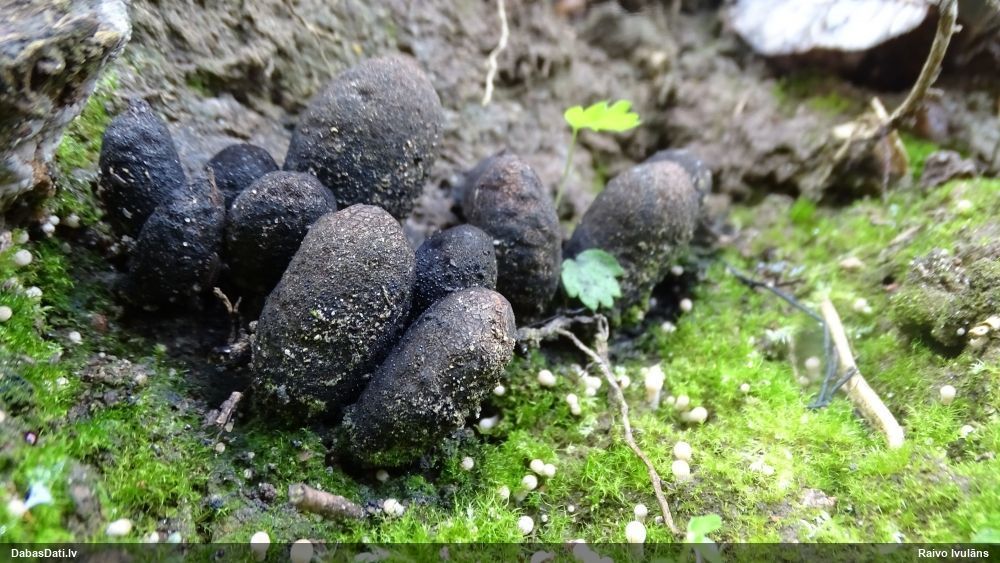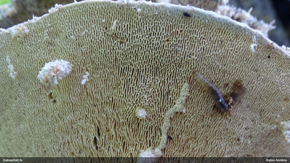 Paldies par paraugu! Paraugā augļķermeņi gan bija ļoti cieti, līdz galam nenobrieduši. Jauna eksemplāra krāsa var būt nozīmīga noteikšanā, bet svarīgi arī nobriedināt (turot mitrākā vietā), citādi perīdiju noņemt mikroskopēšanai ir praktiski neiespējami. Šajā gadījumā mazu gabaliņu izdevās atmiekšķēt un nodabūt, kas sarežģītākos gadījumos varētu būt nepietiekami. Pēc izmēra un perīdija pazīmēm te varētu būt divi varianti L.irregularis un L.epidendrum, kas esot viens no grūtāk atšķiramajiem sugu pāriem. L.epidendrum vairāk raksturīgi, kā es tos saucu, pārstaipi uz augļķermeņa virsmas, kas te ir ļoti labi redzami, tāpēc izšķīros par parastāko sugu.