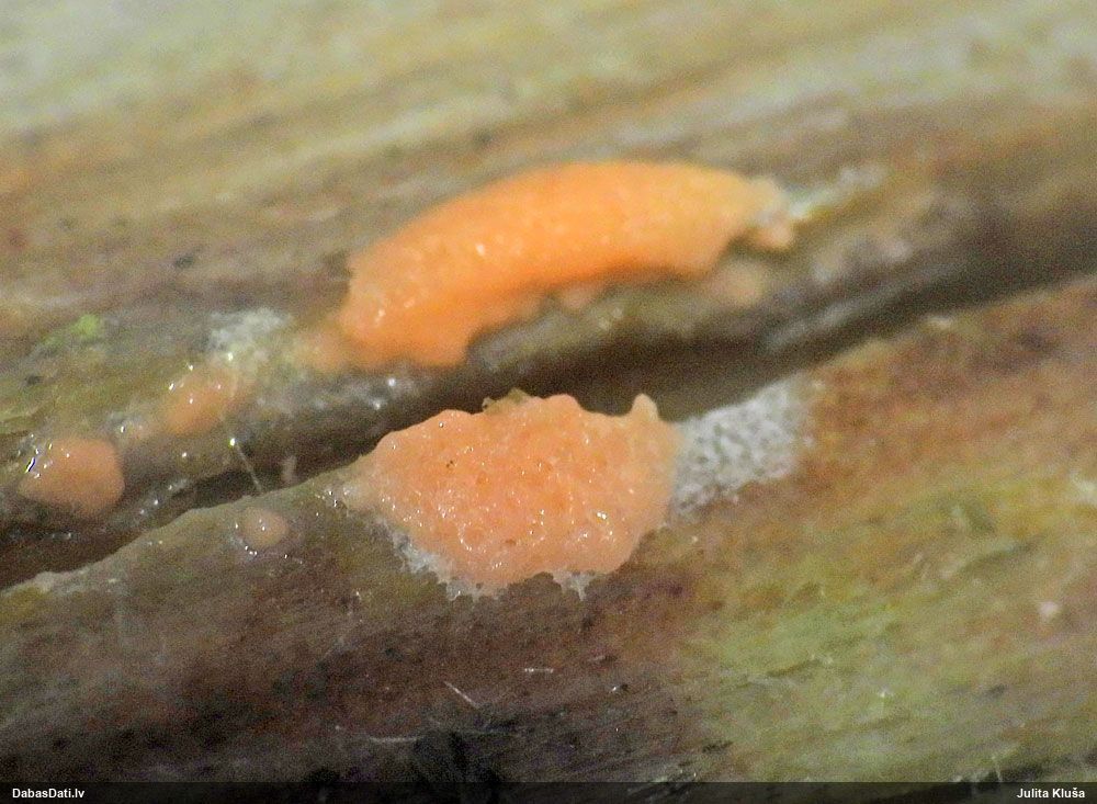 Pieņemot, ka uz egļu sveķainām rētām, tad Sarea difformis (Fr.) Fr. . Protams, vislabāk šādus būtu noteikt balstoties uz mikro pazīmēm.