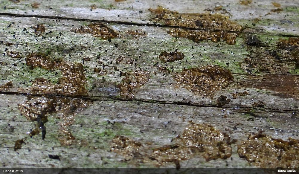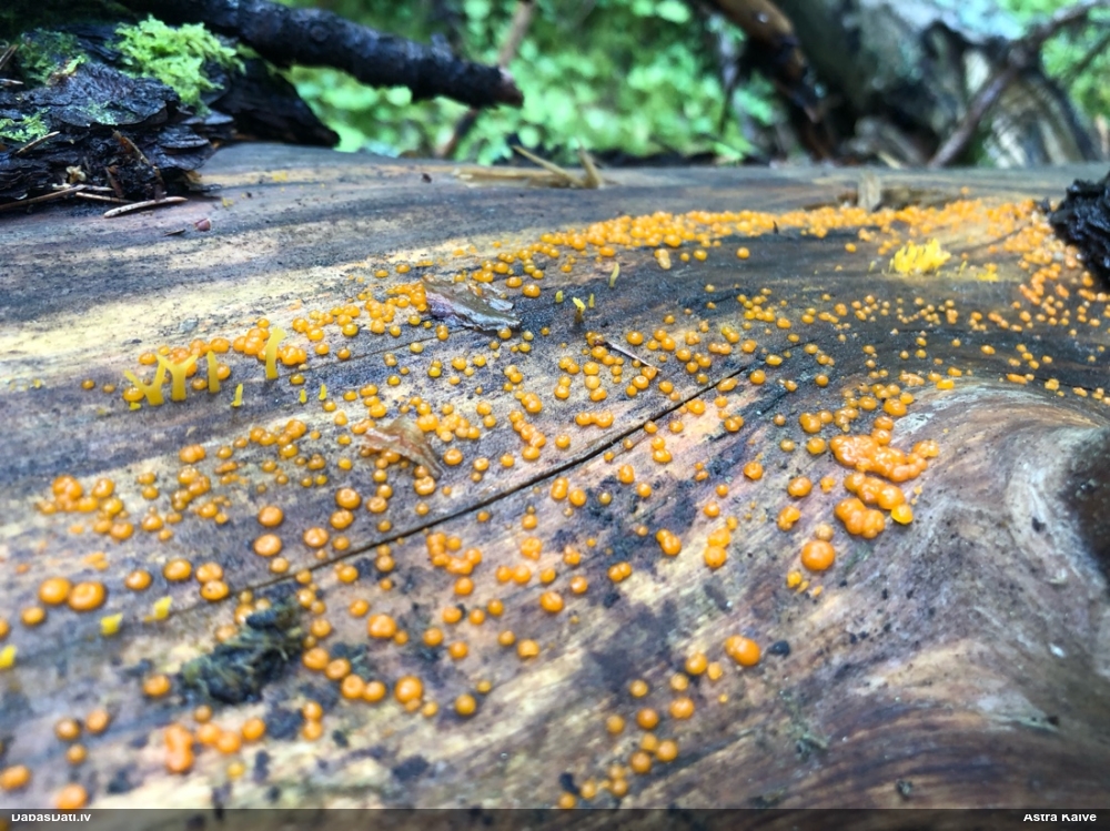 Jā, būtu jauki, ņemot vērā, ka nu jau skaidrāk iezīmējas, uz kā meklēt, un manējais atradums nemaz nebija vēl riktīgi izsporojies, lai arī nobriedis, tā ka arī domāju, ka noteikti cerības vēl ir. Pat šķita, ka manā gadījumā bija arī jaunāki eksemplāri, bet tad atkal sašaubījos, vai tie nav caurspīdīgi-baltgani sveķu pilieni. Ja ir pa vienam gab., tad pārliecība dabā nepavisam nav liela. Varbūt svarīgākais ir ne egles dzīvīgums, bet micēlijs, kas radies uz sveķiem, kas, savukārt, rodas no dzīvām eglēm. Tādā gadījumā drošs fakts ir tikai tas, ka eglei ir jābūt bijušai dzīvai :D. Līdzīgi esmu atradusi arī zeltpūšļu pilienīti Hemitrichia sordivesiculosa, kas raksturīgi aug uz dzīviem lapukokiem, bet es to atradu uz nesen lūzušas apses kritalas. "Dzīva vai nesen dzīva" - varbūt tā var saukt to vajadzīgo statusu.