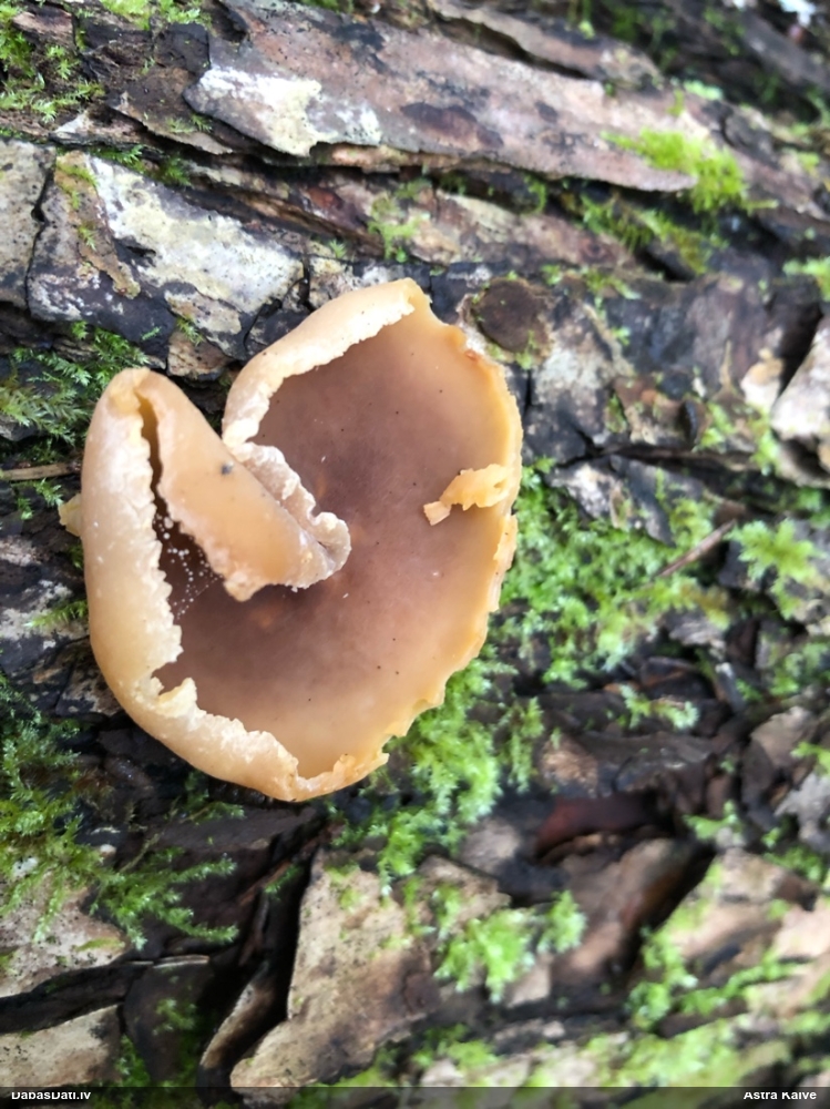 Pieņemot, ka uz egļu sveķainām rētām, tad Sarea difformis (Fr.) Fr. . Protams, vislabāk šādus būtu noteikt balstoties uz mikro pazīmēm.