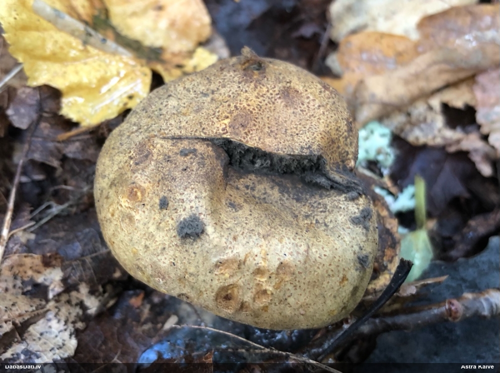 Paldies par paraugu! Paraugā augļķermeņi gan bija ļoti cieti, līdz galam nenobrieduši. Jauna eksemplāra krāsa var būt nozīmīga noteikšanā, bet svarīgi arī nobriedināt (turot mitrākā vietā), citādi perīdiju noņemt mikroskopēšanai ir praktiski neiespējami. Šajā gadījumā mazu gabaliņu izdevās atmiekšķēt un nodabūt, kas sarežģītākos gadījumos varētu būt nepietiekami. Pēc izmēra un perīdija pazīmēm te varētu būt divi varianti L.irregularis un L.epidendrum, kas esot viens no grūtāk atšķiramajiem sugu pāriem. L.epidendrum vairāk raksturīgi, kā es tos saucu, pārstaipi uz augļķermeņa virsmas, kas te ir ļoti labi redzami, tāpēc izšķīros par parastāko sugu.