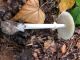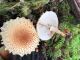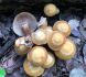 Vairākas galviņas uz pagaras kājiņas, sporu mākonis dzeltens (ne sarkans, kā šunu daudzpilītei).