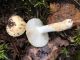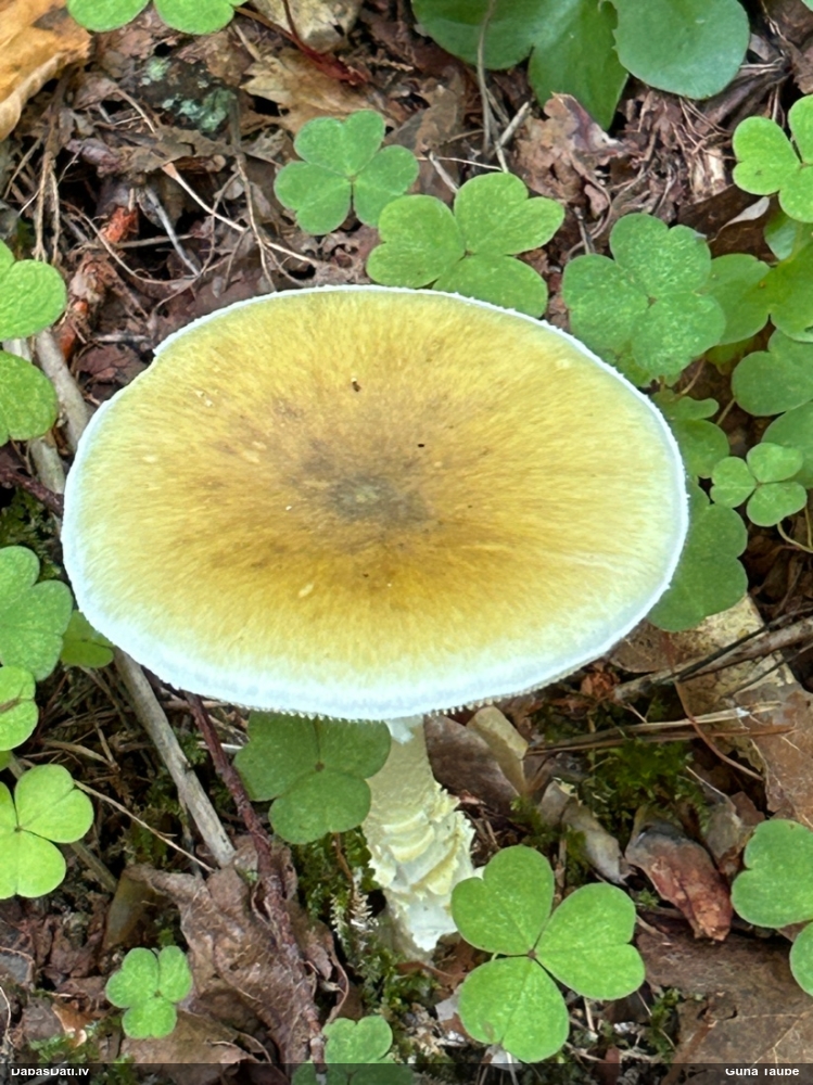 Vairākas galviņas uz pagaras kājiņas, sporu mākonis dzeltens (ne sarkans, kā šunu daudzpilītei).