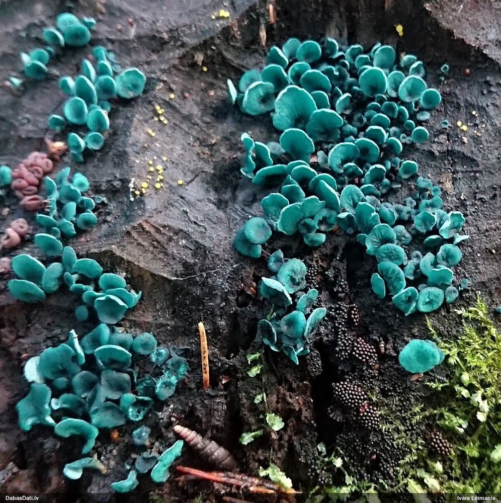 Pieņemot, ka uz egļu sveķainām rētām, tad Sarea difformis (Fr.) Fr. . Protams, vislabāk šādus būtu noteikt balstoties uz mikro pazīmēm.