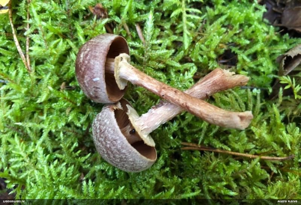 Staipīgs kapilīcijs esot P.depressa. Bet tai vāciņš ir plakans. Mani eksemplāri jau izsporojušies, bet te foto vāciņi taču nav plakani?! Skatījos Nannengas monogrāfiju, tur pēc atslēgas aizgāja uz cf. P.depressa, t.i., līdzīga plakanajai, ar staipīgu kapilīciju, bet izliektu vāciņu kā kārpainajai. cf nozīmē, ka tāda suga nav oficiāli izdalīta, un nav nekādu attēlu, par foto nerunājot, līdz ar to var tikai minēt, vai Nannega domājusi tādu gadījumu kā mums izskatās. Par paraudziņu esmu gatava saderēt, ka būs tāds pats kā man :), bet interesanti jau būtu kapilīciju paskatīt, vai tieši tāds būtu.