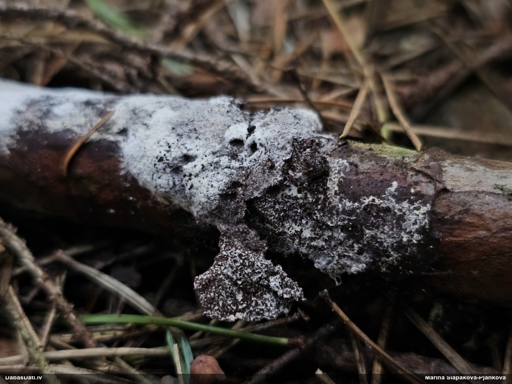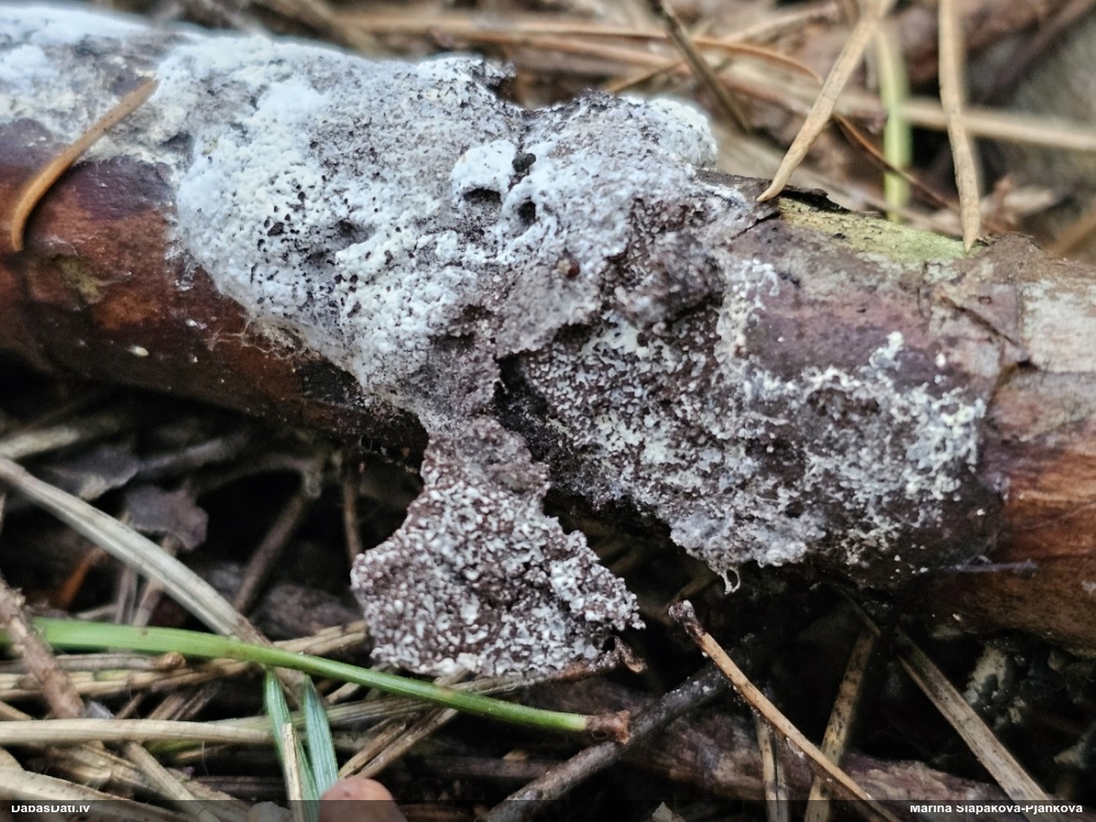 Nu vai tad šis nav Sorocybe resinae micēlijs, uz kura mēdz augt gļotsēne?